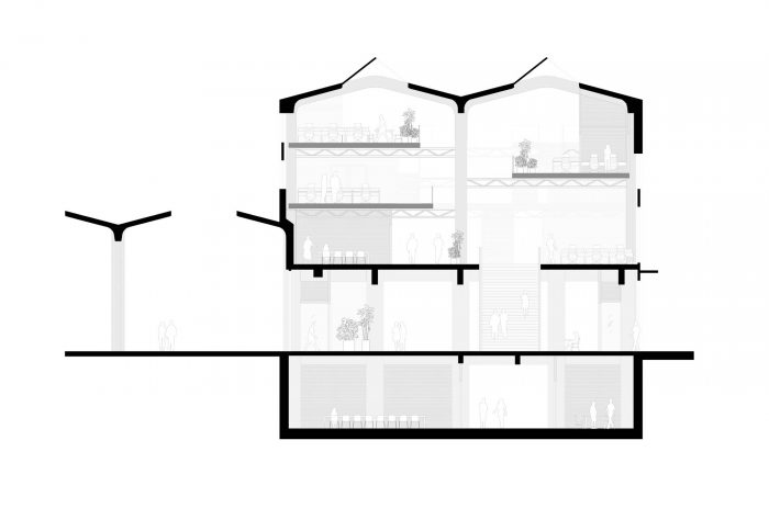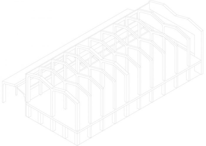 新的楼层尽量采用轻质结构,在现有的柱子之间采用开放式的格子梁。在上面铺设带有集成吊顶板的楼板。因此,该设计不仅延续了视觉上的空间感,还允许在未来对改造进行调整,甚至是恢复。从而保证了结构对未来需求的灵活性。