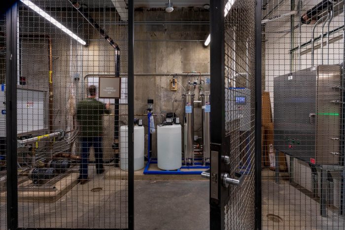 经过处理的雨水被用于饮水机、水槽和淋浴。这些装置产生的灰水被抽到建筑主入口处的一个人造湿地。然后,这些水在重力作用下,通过一系列的雨水花园和与分层外部梯田一致的滞留结构,然后渗透到场地中。目前,该大学为向亚特兰大过度扩张的下水道系统排放雨水而承担了大量的费用。Kendeda大楼展示了可用的策略,这些策略可以在整个校园部署,以更智能地管理雨水。