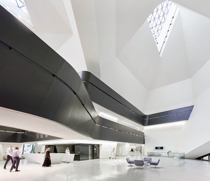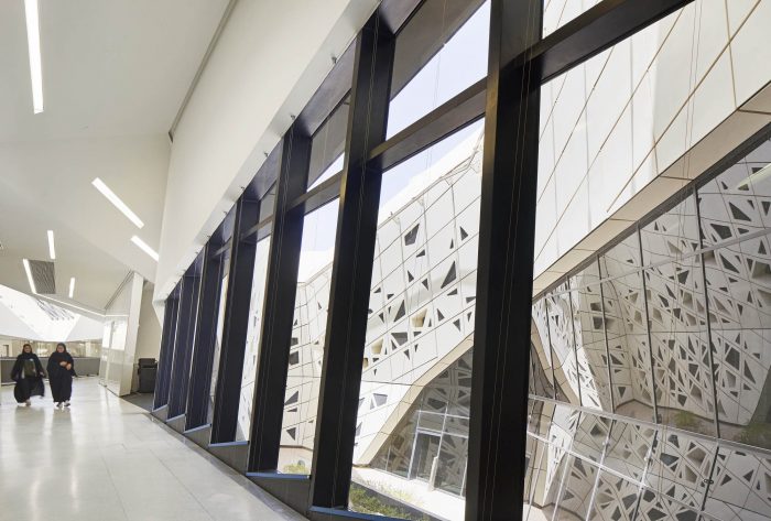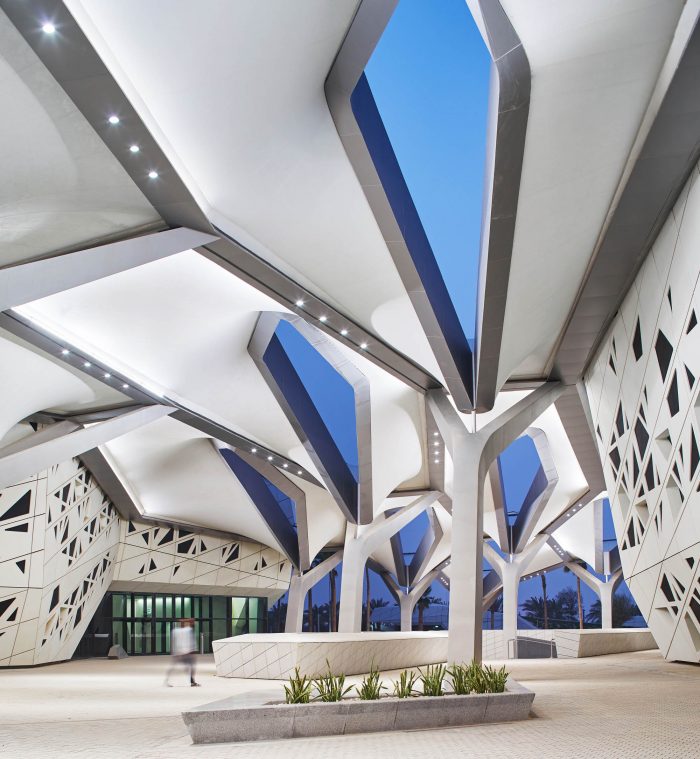 KAPSARC’s design has solid technical and environmental considerations at its heart, drawing the five elements of the campus into a unified whole. ZHA’s first project to be awarded LEED Platinum certification by the US Green Building Council, the centre is designed in response to the environmental conditions of the Riyadh Plateau to minimise energy and resource consumption.