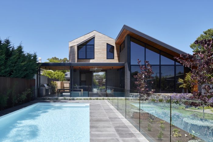The brief grounded a design process calling for exploration beyond gestural form and configuration of pragmatic space. Addressing the brief meaningfully required a process that pivoted around texture, color, and materiality. An attempt to dissolve the distinction between context and content was made in pursuit of a solution that embodied the clients at every scale and through every sense. Form was shaped as the architect’s understanding of the clients grew, with their individual habits and behaviors informing the arrangement of volume, activating heritage spaces for the parents and second story volume for the children. Council restrictions on second-story additions drove the design to maximize internal space with voids and varied angles. Gabled rooflines, sympathetic to the existing heritage coupled with ridgelines reaching up to allow sunlight in and views out. Ceilings and soffits follow internally with a double-height living area at the ground. The children’s breakout space is bound by a playful plywood ceiling on the first floor.