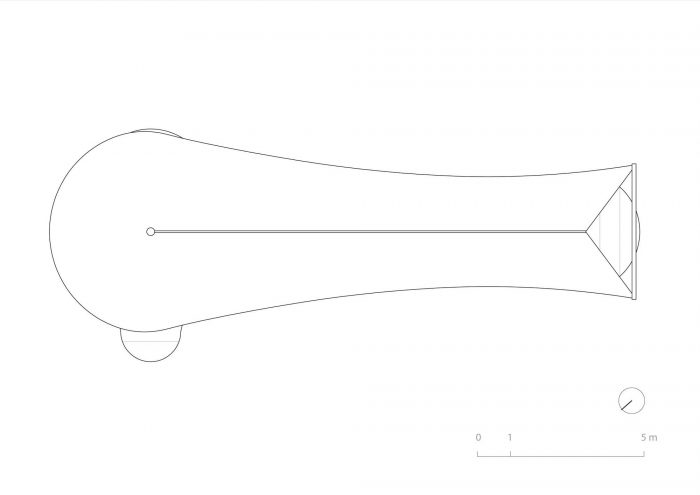 在设计之初,任务是在广场周围设计供人们休息的亭子,面积不超过100平方米。最重要的命题是如何在一个大而开放的空间中确定小亭子,以及如何在人体的干预下创造一个丰富的空间感知力。因此,"长体量的亭子 "与相同面积的较大表面成为整个项目的出发点。