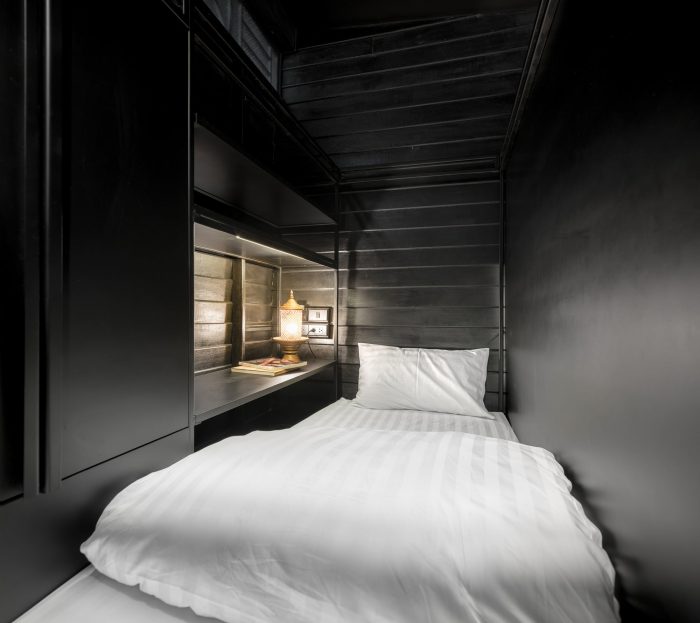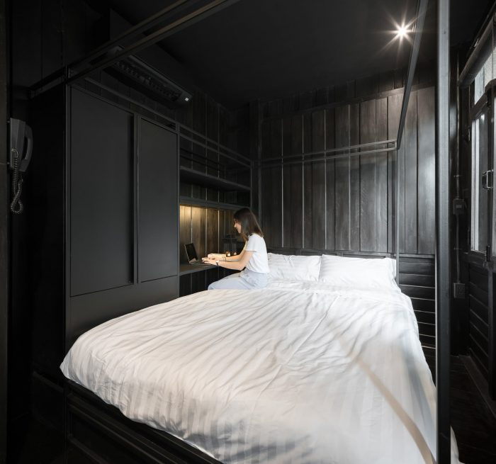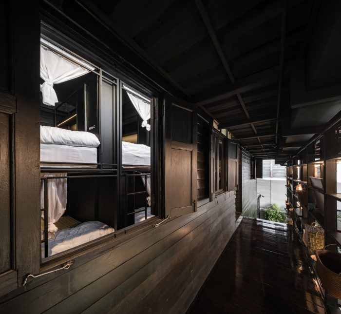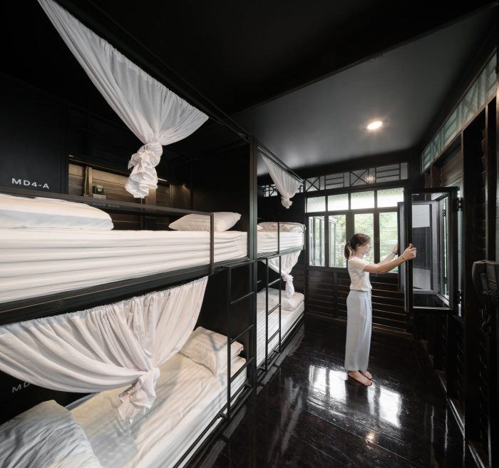 The main design approach for this project was to design this space based on as much as possible existing structure and material by focusing on “repairing” and “adding”. Firstly, the existing structure was kept as the way it is. Then, all wooden walls were removed to be repaired, polished, and repainted. Even in the details such as the window frames, they were kept the way they were, yet we’ve added the glass as a new layer to let the natural light in but still able to use air-conditioned system. The space planning was rearranged to suit with the new usage as a hostel.
