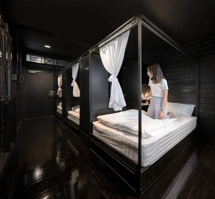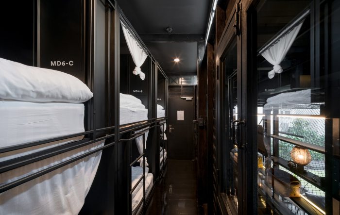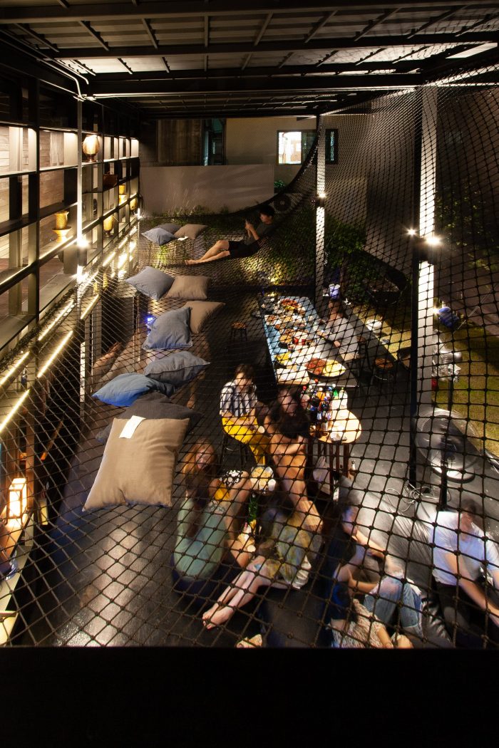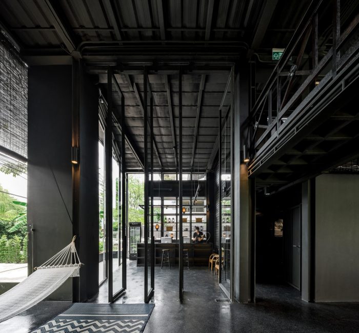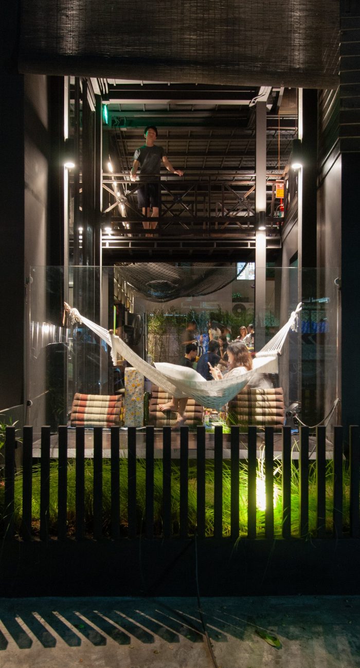 This integration of the new steel structure whose representing the present time with these 2 existing wooden buildings gives KLOEM HOSTEL the right atmosphere and introducing Bangkok to visiting guests like the “good old folks” of the neighborhood would.