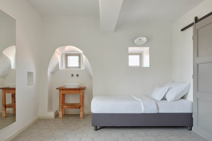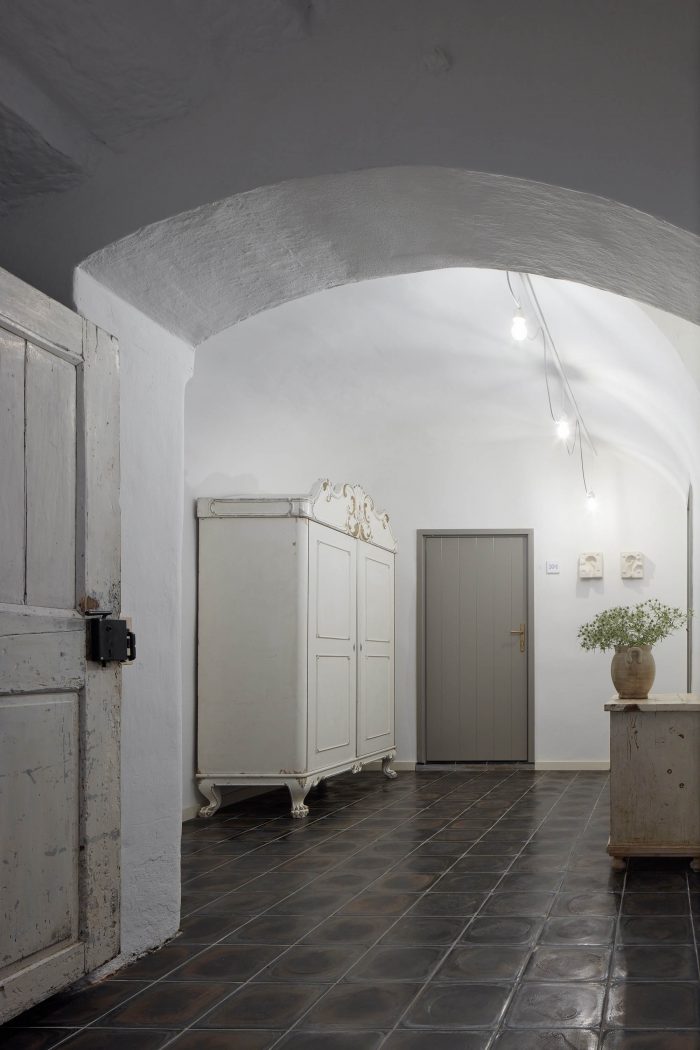 内部装修。室内装修有意简陋,但并不缺乏亲切感。我们保留了真实的材料和细节,如门或原有的装饰性木地板。新的地板是用玄武岩和水泥砖铺成的。在一些地方,原来的画作被揭示出来。