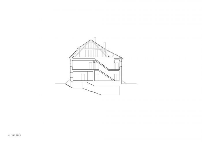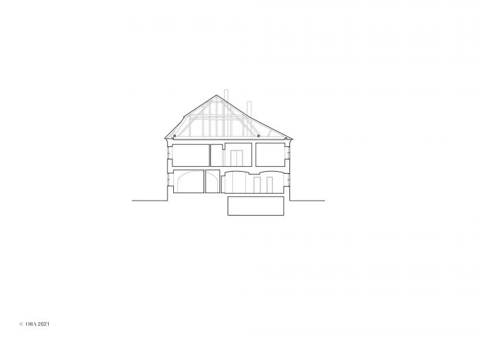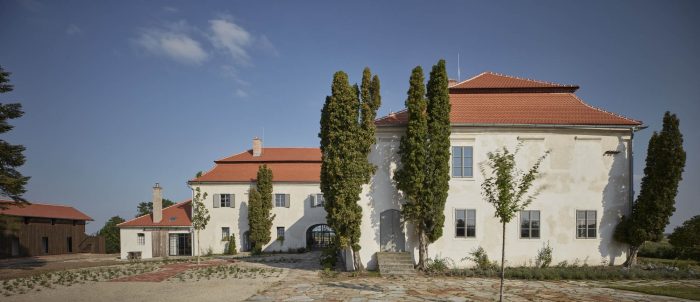 The project addresses the first stage of the conversion of the area of a former ceramics factory in a small south Moravian village Kravsko. The central baroque building was originally built as a Coach Inn on the route Prague-Vienna. In the second half of the 19th century, the complex was transformed into a famous ceramics factory. In the nineties production was terminated, the property changed owners and fell into disrepair for a long time. The current owners, who come from Kravsko, are redeveloping the property for social events and agritourism. The complex will have several halls, a large accommodation capacity and a kitchen.