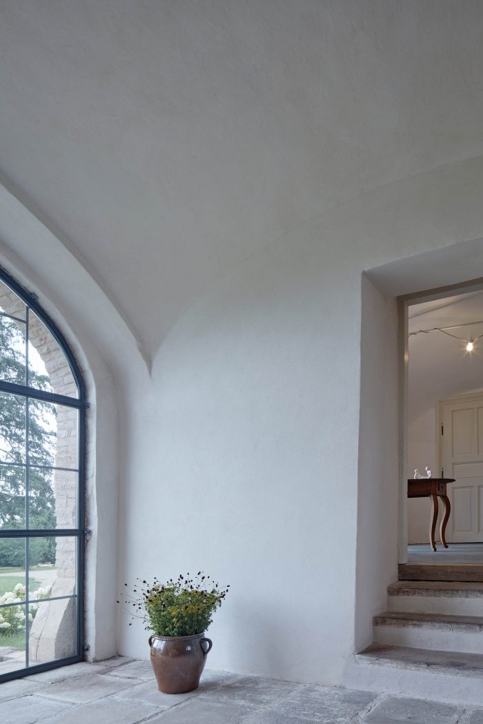 我们最大限度地利用了旧家具--桌子、柜子、椅子,也包括洗脸盆下的桌子或旧的铸铁浴缸,这些都是我们自己从全国各地找到并带来的,或者从我们喜欢的古董商那里买来的。每到一处,人们都会意识到自己是在一栋老房子里。但白色的墙面为最后的拼贴提供了足够的抚慰。