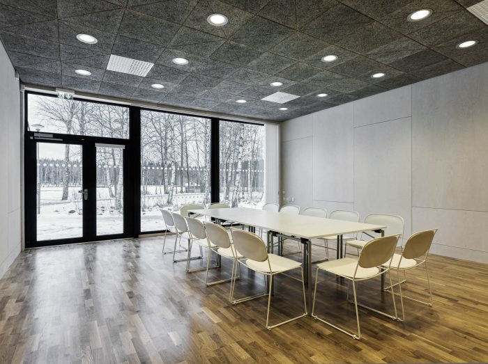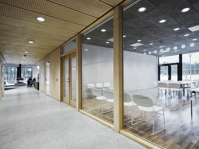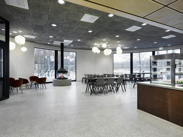 We wanted to create an iconic and harmonious building that would stand as a symbol for outdoor activities and exercise. Our landscape architects have made the building feel as natural as possible by preserving as many trees as possible in the surroundings.