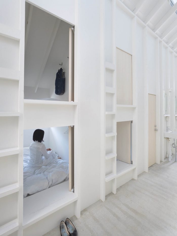 We designed a new guesthouse for young people from all over the world at Koya-san, the head temple of the Shingon sect founded 1200 years ago, the UNESCO world heritage. It is a mixture of Japanese capsule type hotel in which the privacy is well protected, and dormitory in which the communication among the guests is active. Each single room directly faces a hall so that you can chose proper distance with other guests ensuring the privacy. Selecting of thin wooden structure, resulting that the burden load per one pillar is relatively light, visibility of environmental facilities for easier maintenance and the simple composition of the space allow not only owner of this guest house but also guests to maintain, modify and keep on using this architecture for the long time.