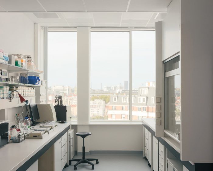 Particular attention is paid to the quality of life: spaces for conviviality and relaxation are grouped together in the center of each unit. The main entrance to the institute is positioned as close as possible to the existing teaching and research building and opposite the entrance to the CHU. The forecourt, laid out to create the link between the three establishments, creates a real public space, a place of conviviality and exchanges between students, researchers, and doctors.
