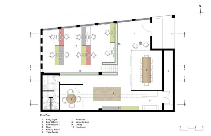 为该项目选择的所有材料都有两个重要的实施标准。第一是它们在环境上是可持续的,而且也不需要进行涂饰,第二是它们是专有的,而且容易获得,以保持项目的成本降低。几乎所有的家具、办公桌、会议室桌子、细木家具、书架和照明都是设计和定制的,以保持设计语言的连续性。董事会会议室的甲板是由层压LVL木梁和混凝土管基构成的。任务照明是由剑麻绳定制的,它也被用作墙面装饰。这些材料提供了新与旧、制造与有机的并置,也是对一般商业工作环境的批评。该项目旨在为室内工作空间设计、可持续发展提供设计选择,并最终重新审视我们的文化态度。