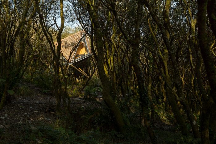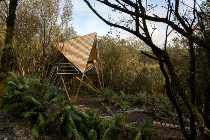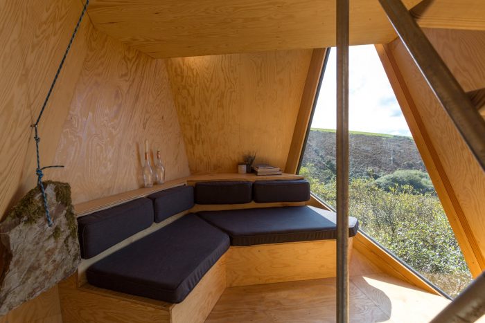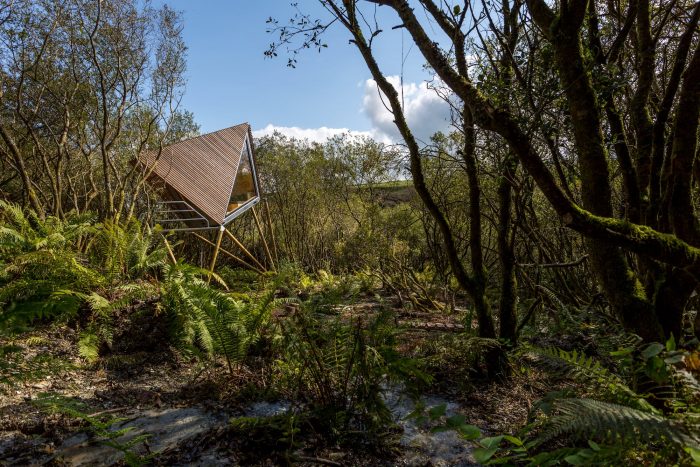 The word ‘Kudhva’ come from the Cornish for ‘hideout’ and was the touchstone for developing the brief for these secluded retreats. The cabins are intended to offer a unique perspective on the Cornish landscape from their elevated position amongst the trees.