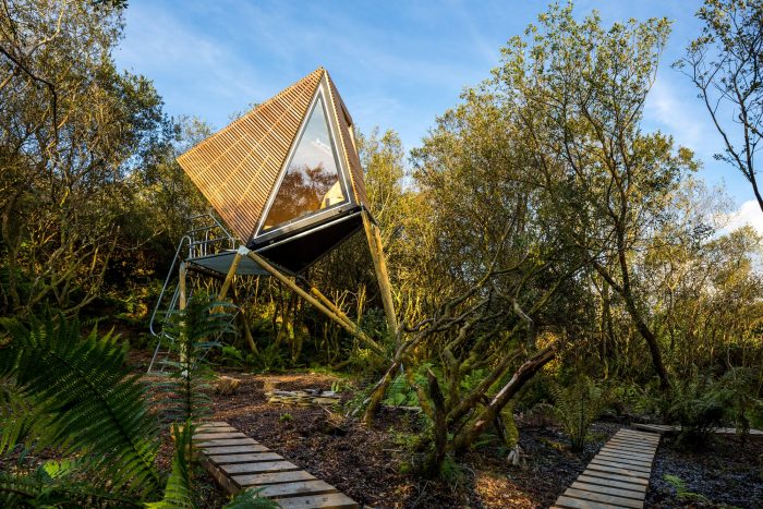 Kudhva "这个词来自康涅狄格语,意为 "藏身之所",是开发这些隐居地简介的试金石。这些小木屋旨在提供一个独特的视角,从他们在树丛中的高处看康沃尔的风景。