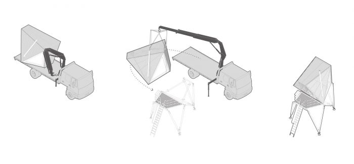 The project is now open to the public with the cabins available to rent. The site also hosts a temporary scaffolding reception building offering a canteen as well as toilets and showers. Further projects are planed for next spring and talks have already begun with other similarly interested agencies with regard to future collaborations exploring new shelter typologies and other architectural interventions for the quarry site.