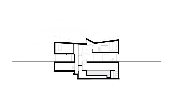 它的晶体形式来自于周围的建筑:30年代的紧凑型单体房屋,带坡屋顶,位于大花园的角落。在这里,这个六边形的物体是有角度的,以便在西北方向为车库留出空间,并允许在南边有一个宽敞的花园。