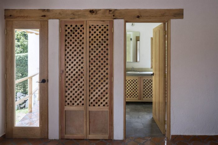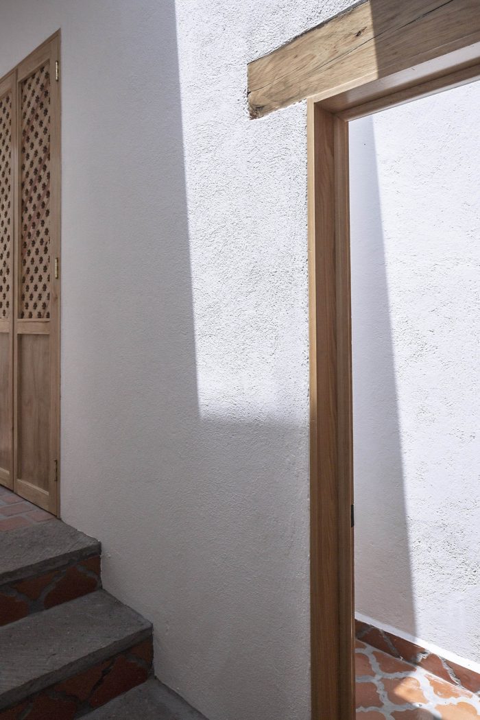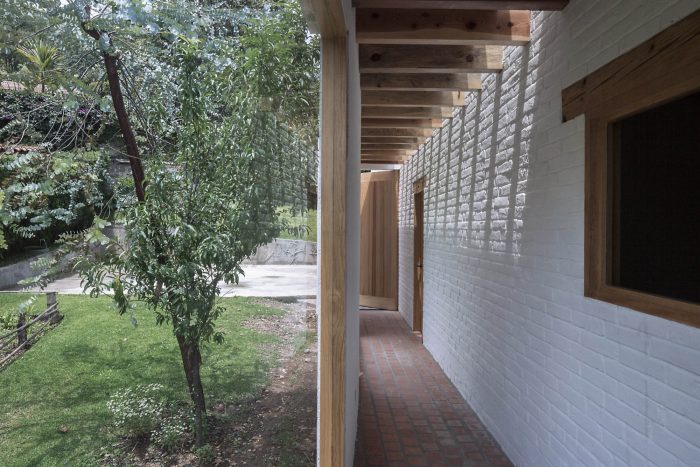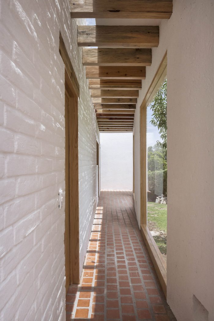 We proposed to solve both with a single element. A curve that connected the old house and the new volume forming a new circulation, a path that is compressed and expanded as it is traveled. The intersection of this line with the preexistence provided a lateral access to the residence and, therefore, some internal changes in the disposition of the dormitory and bathroom that were totally reformulated. Here, locally produced materials were used to reformulate them in a contemporary way.