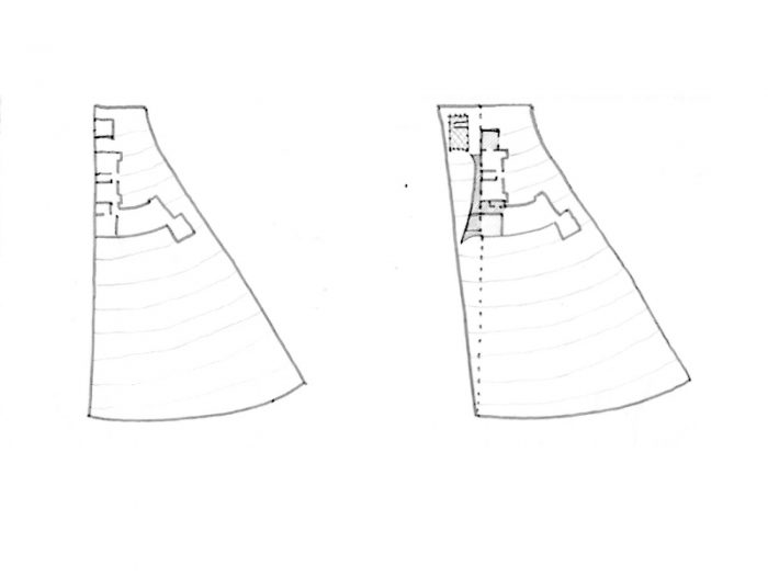 Finally, the autonomous volume was postponed and it was decided to build only the connection. Somehow the project was reduced to a corridor on inclined planes. And that seemed even more interesting.