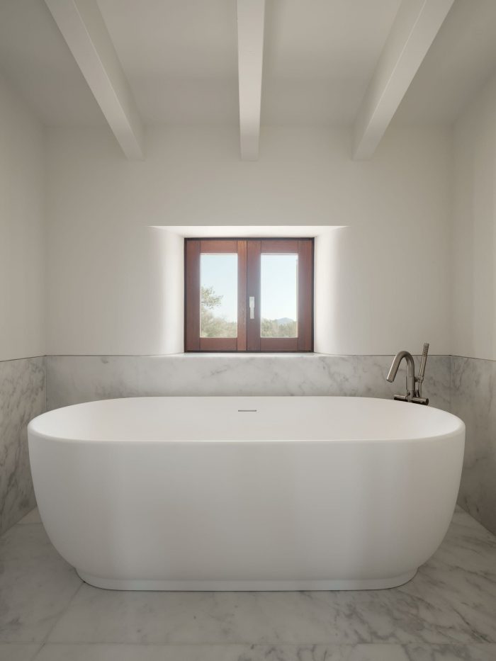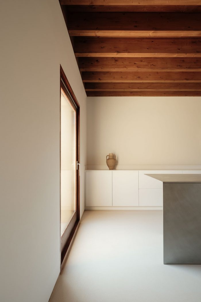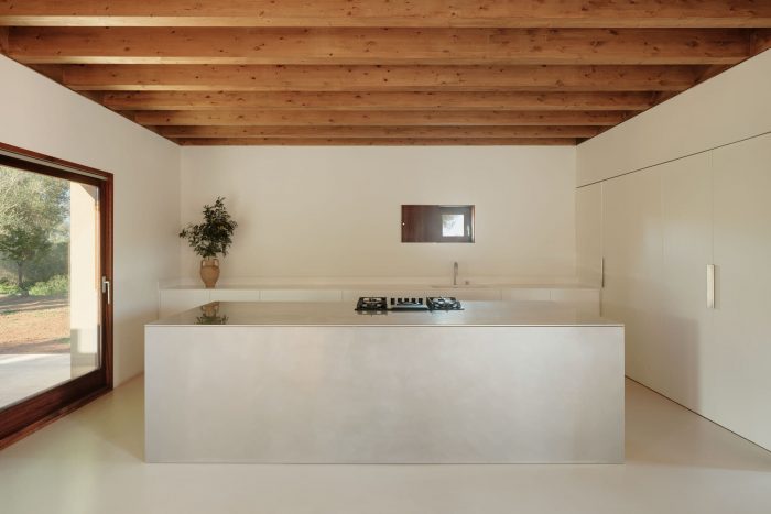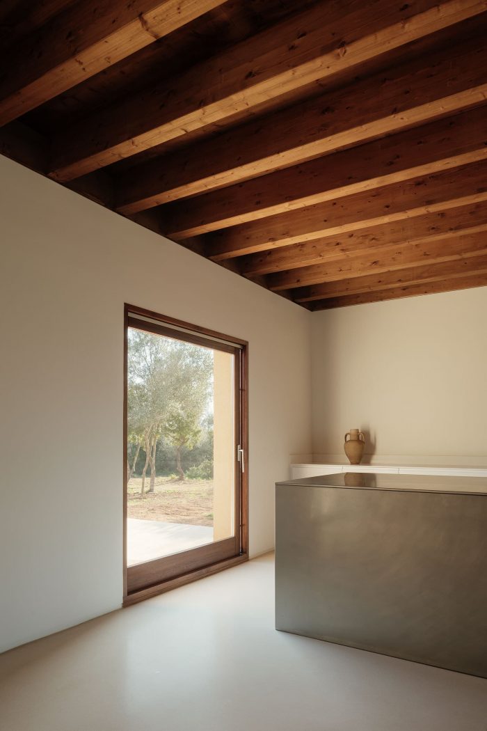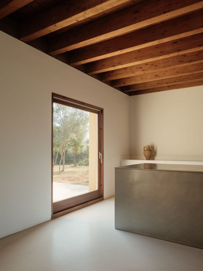 The project has placed special emphasis on the development of contemporary details inspired by traditional Majorcan architecture, from the wooden coffered ceilings of the main living-dining room, the terrazzo floor that emulates and updates the traditional trispol, the flared windows, which have been softened to sift the entry of light, or the solutions of windows and their frames, achieving a well-balanced formalization, rooted to its specific context but also open to broader solutions.