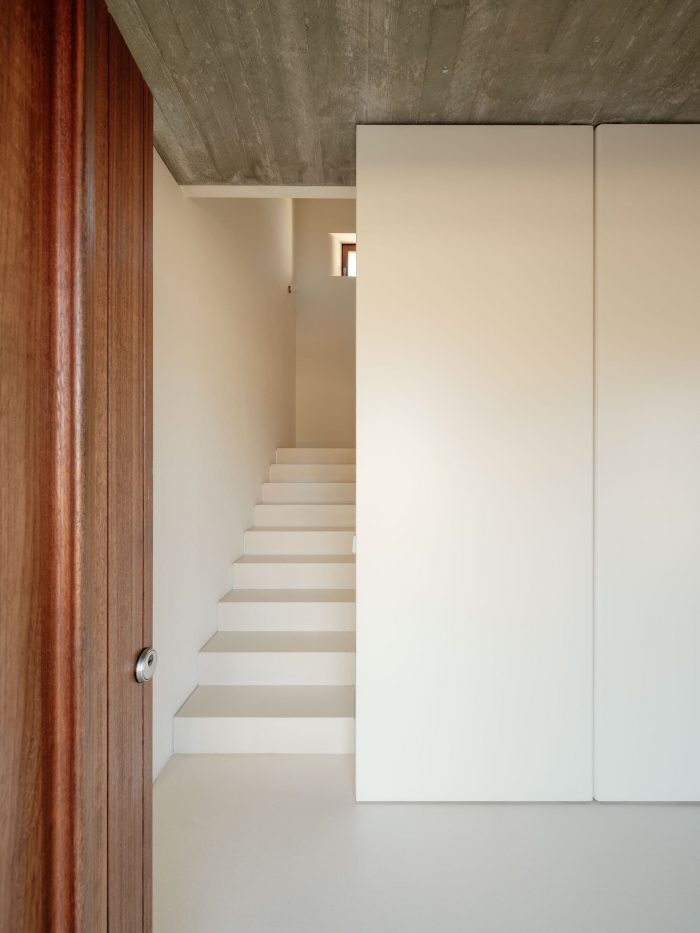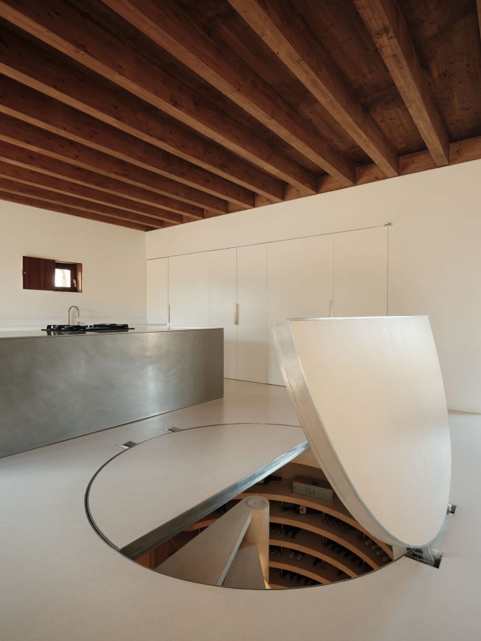Inside, the house can be experienced as a large open space, but it can also be divided into two clearly differentiated parts (one more public and the other more private) the physical separation can be obtained by the simple sliding of a large door panel.