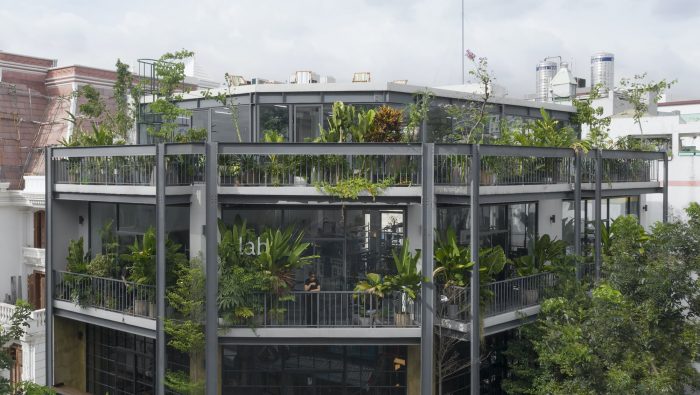 The office is open, so each team is encouraged to adopt a tree or two for soft privacy. We went to the local plant nurseries and picked out trees from about 40 different species. The trees are there for shade and company, but they're also an homage to our old villa office, with its lush garden.