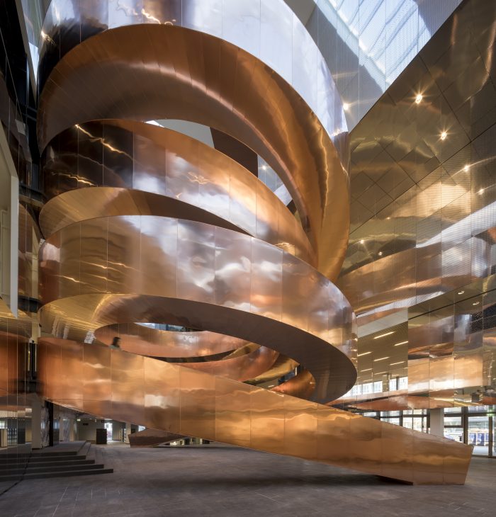 The 100m long staircase is built from 160 tons of steel and clad with 10 tons of copper.