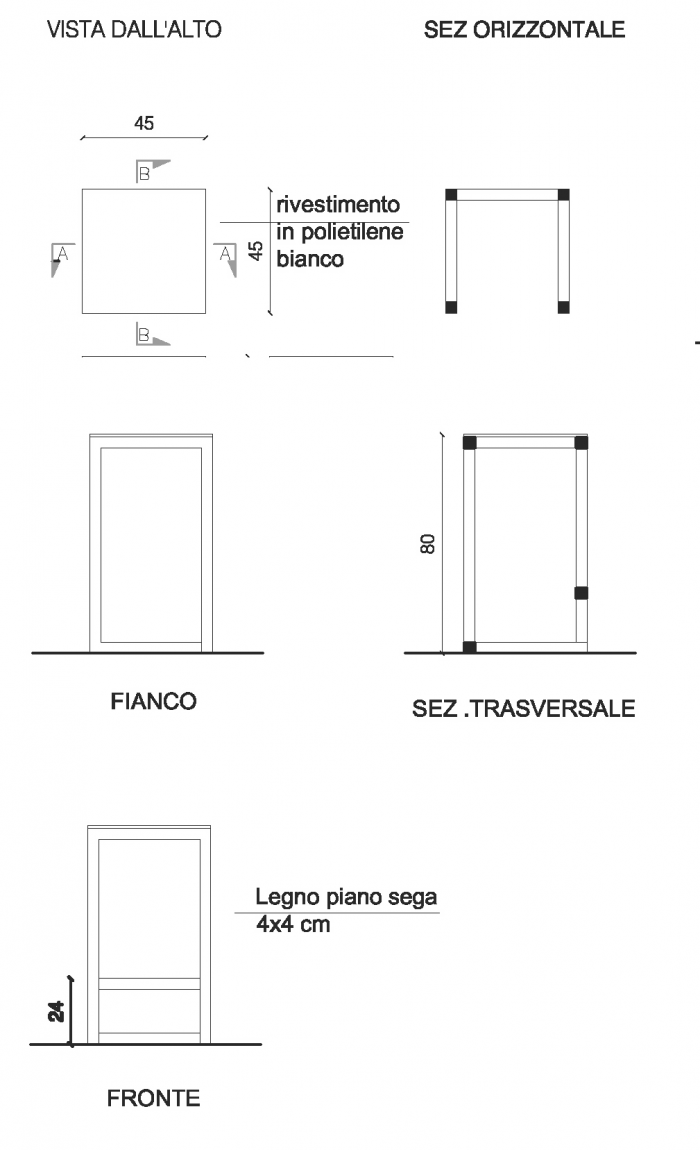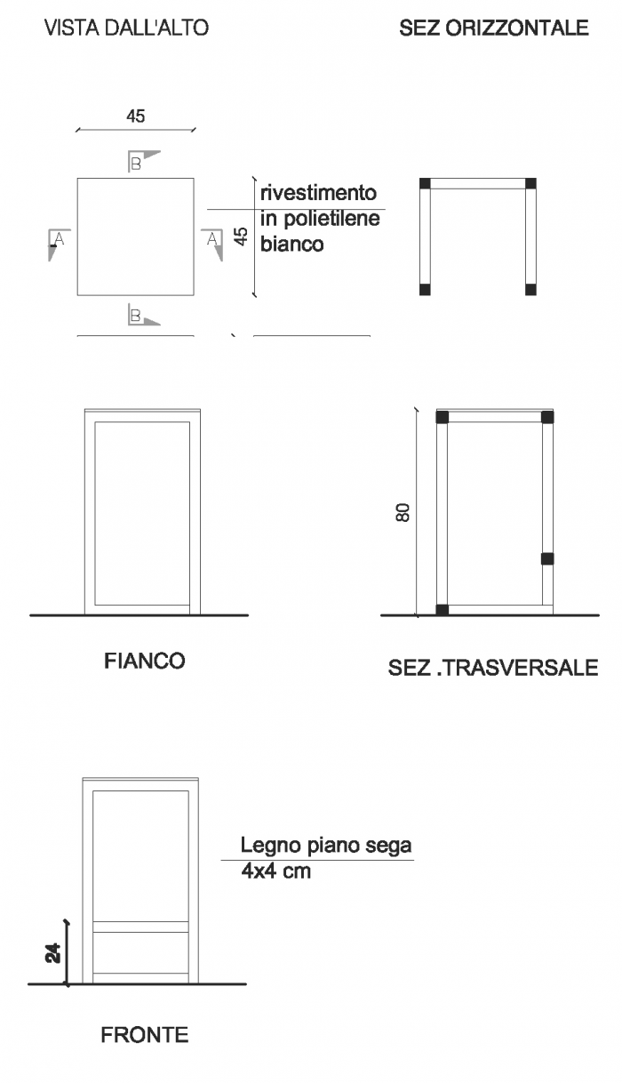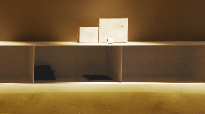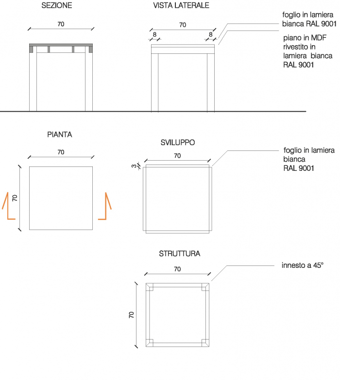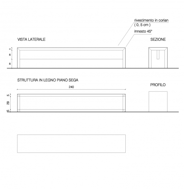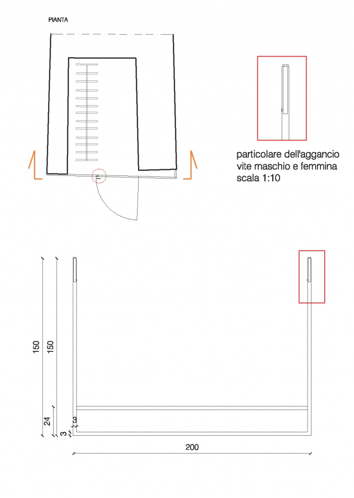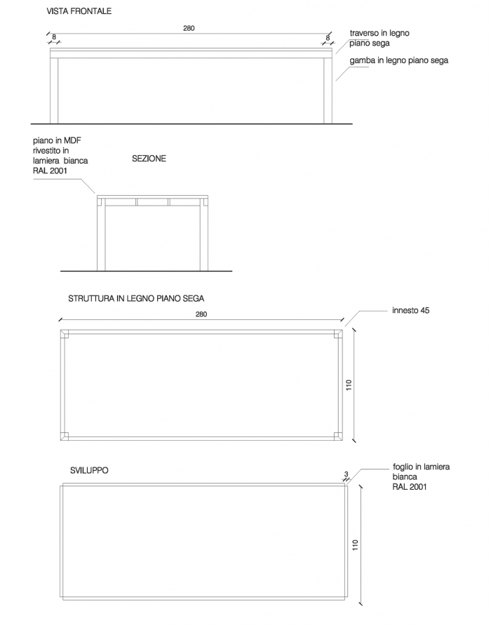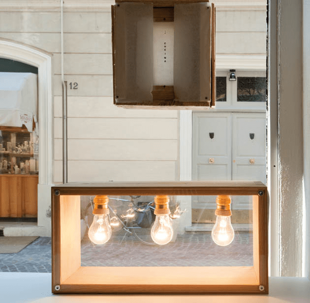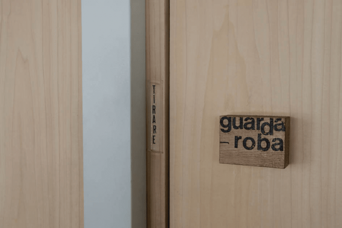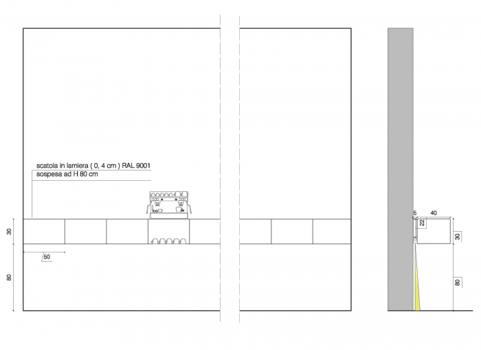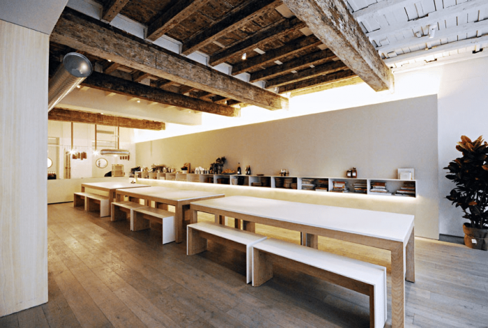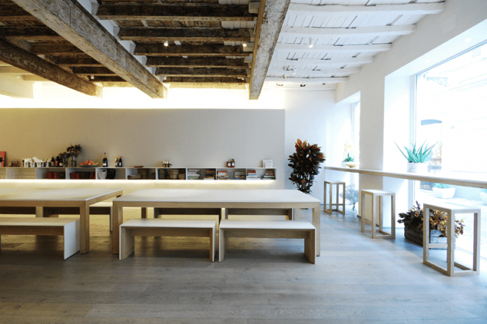 All used furniture as benches, stools, tables, serving counter, sink, toilet and incandescent lamps have been custom designed, only exceptions being the Porro seats and led lighting (from I LED).