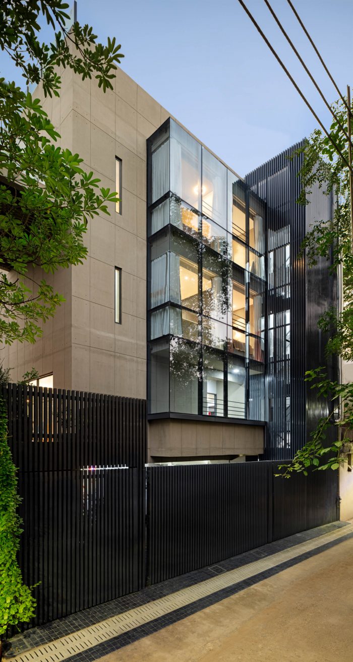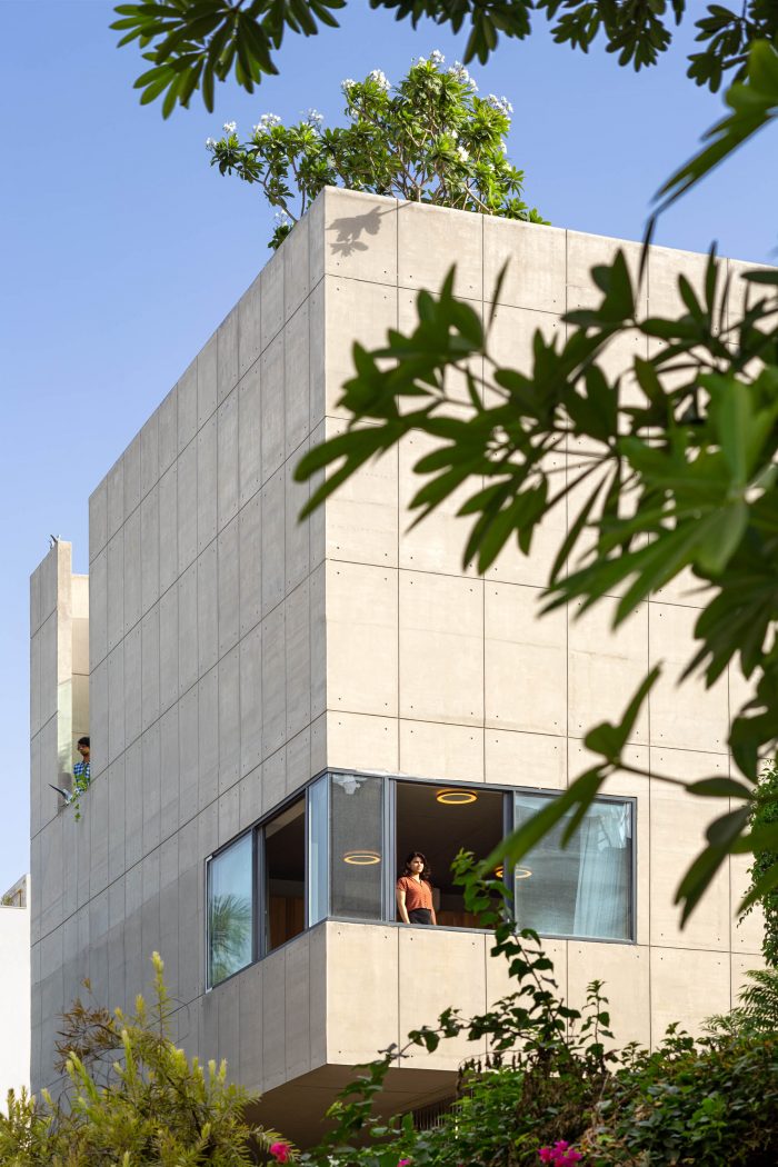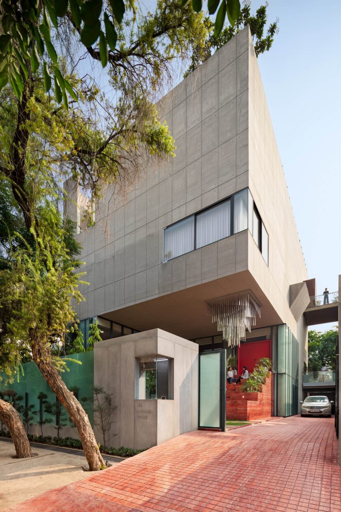 The Ladhani House is a thoughtful approach towards designing residential spaces for new-age clients. The design of the spaces departs from the ideas which focused on the past characteristics of vernacular Indian households and follows rather a contemporary theme. The design approach of the architects has been to create optimized floor plates with efficient programmatic functioning to achieve maximized height spaces for the small family. The effort to reduce the built environment has been achieved by designing a cantilever system with concrete which enhances the opportunity to design open and spillover spaces.