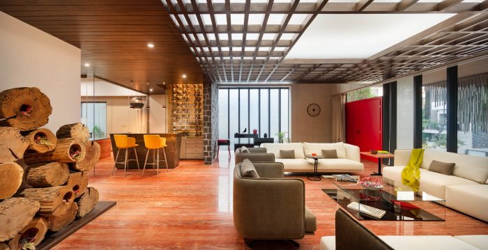 The whole informal and simplistic ambiance with the amalgamation of spatial elements is the result of the deeply engaging conversations between the designers and client to create a space that reminisces the sentiment of being at home. The natural finish materials imbued into characteristics of modern spaces are featured with the natural sunlight in the day. The house becomes a haven of peace and with a specifically designed facade to frame views that connect the surroundings. The design aims to infuse liveliness and a cool quotient into the home of the Ladhani family.