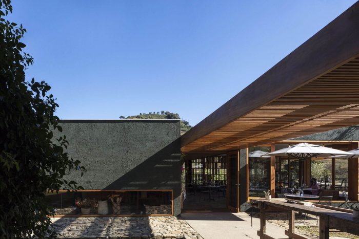 Oliq Restaurant. The restaurant is the fourth building designed by Play Aquitetura that makes up the Lagar Oliq. The set is formed by the olive oil production (2013/2014), the services attachment (2016/2017), and the Restaurant (2019/2021). In addition to the three main buildings, there are also projects, next to them, a small greenhouse.