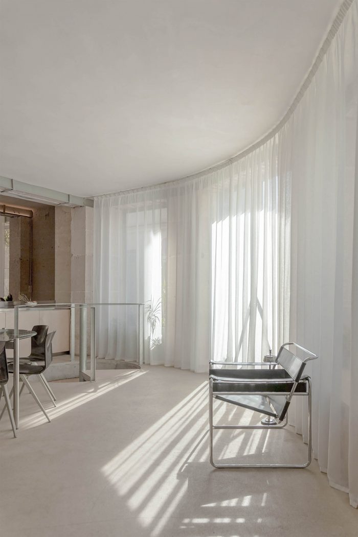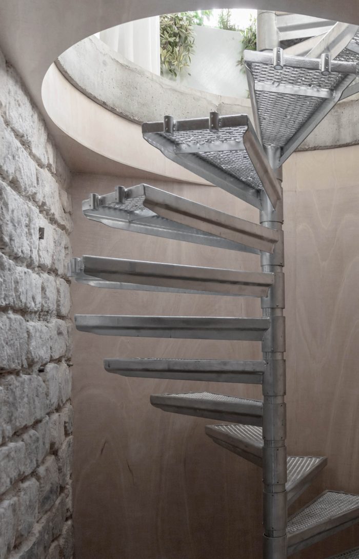 Construction materials have been completely exposed, and the new elements are treated in the rawest possible way.