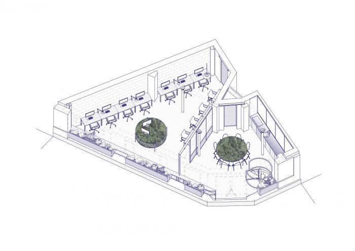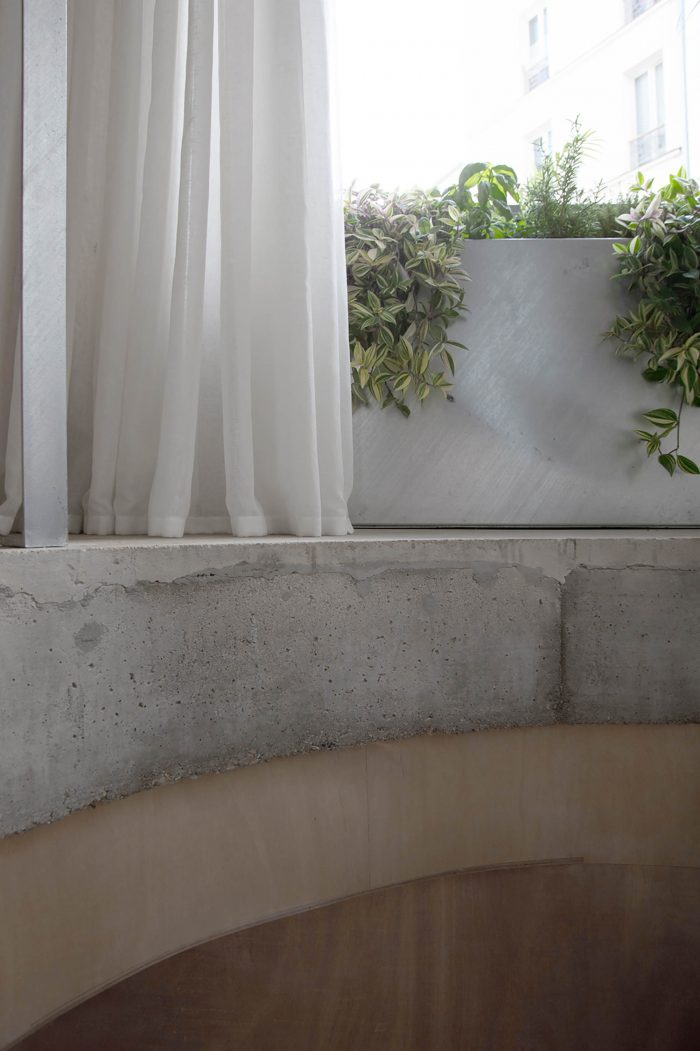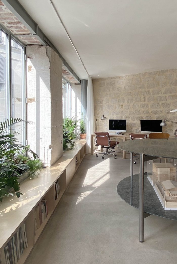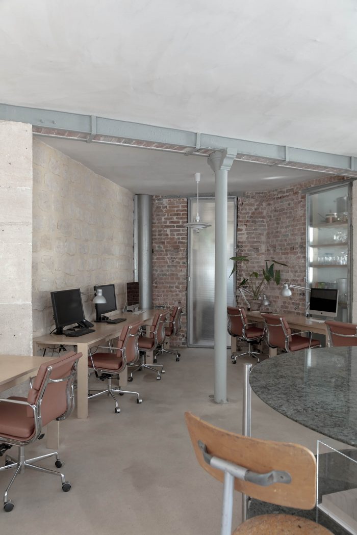 The project consists of the renovation of ground-floor space in the 20th arrondissement of Paris. This space was once a café then, a home, and it has now been converted into offices.