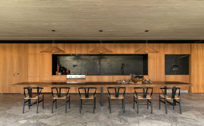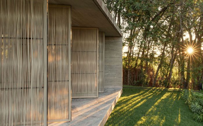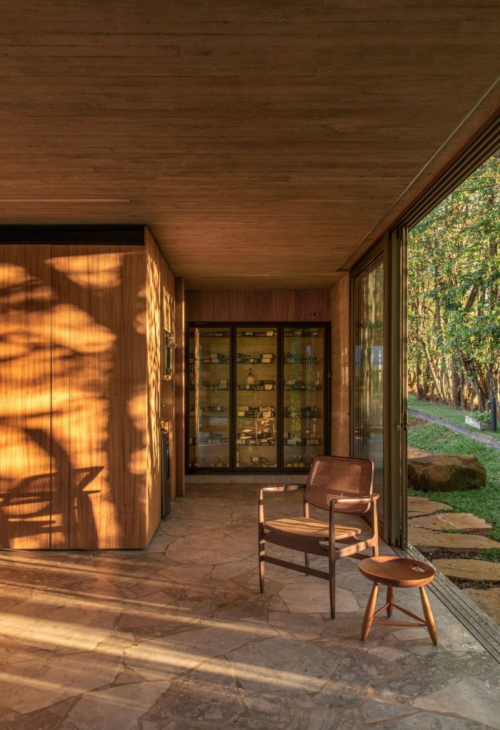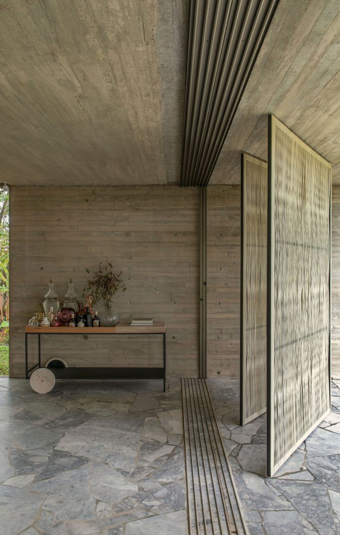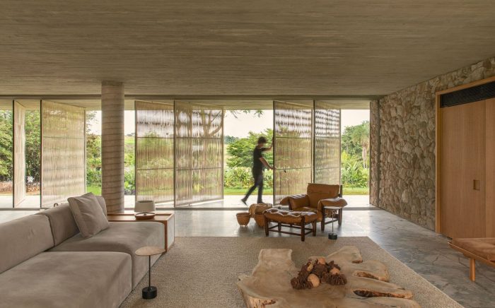 Light invades the interior through the rope brises, which bring beauty and dynamism to the facade, helping to provide sun protection and also privacy, when necessary. The house brings very pure lines throughout its extension, a direct connection with nature and the views, authentic materials, brutality, and softness allowing the sensations to be fully felt and appreciated!
