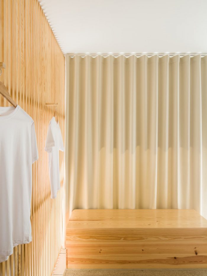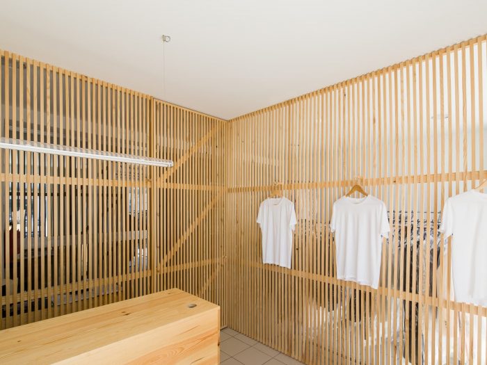 This project takes shape in the center of the village, in a place already known for its laundry services. A hall, which was previously non-existent, was built into the pre-existing space. The main idea is to separate the working and storage area, where employees spend most of their time, from the private area, and the entrance hall, the public space where customers are welcomed.