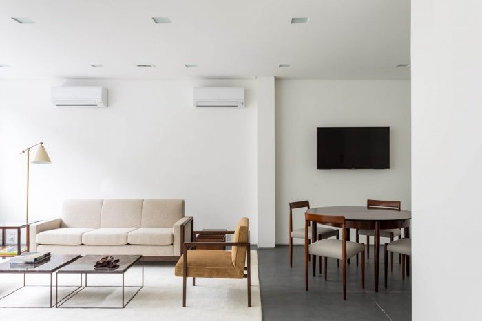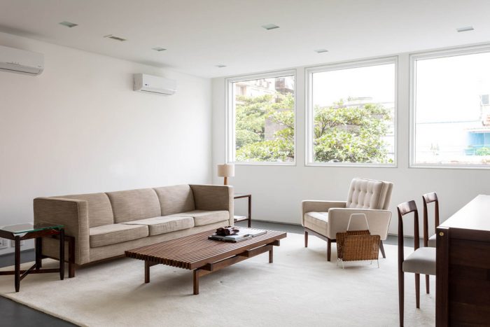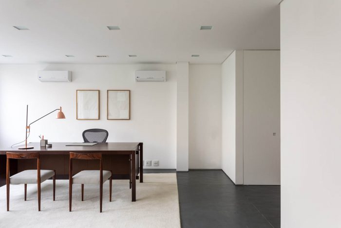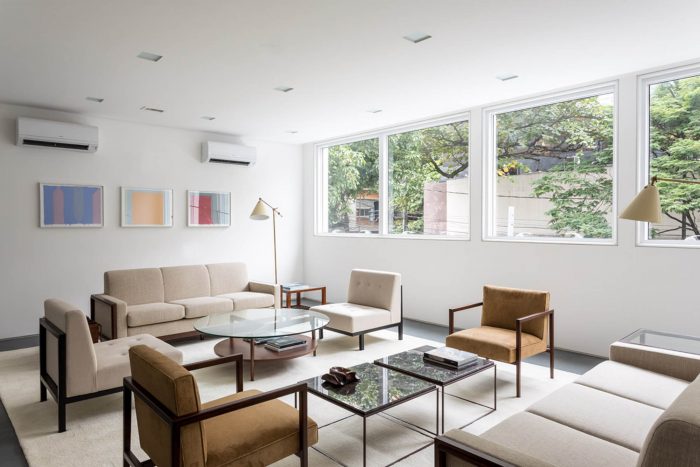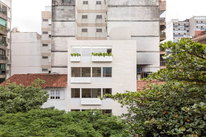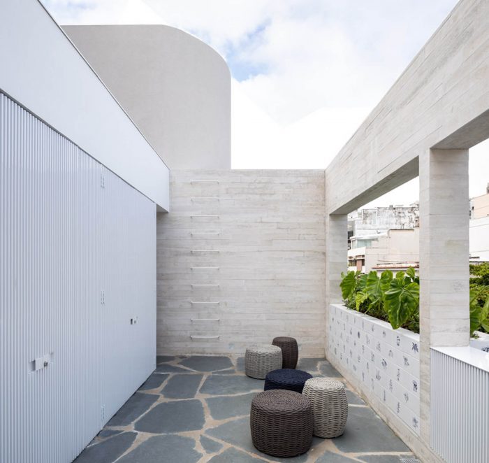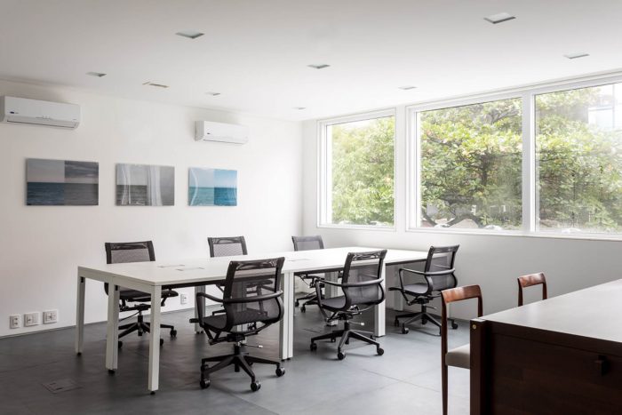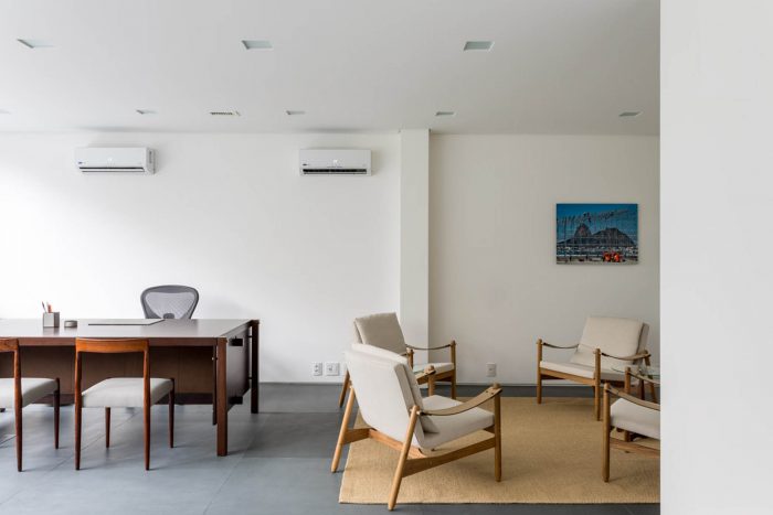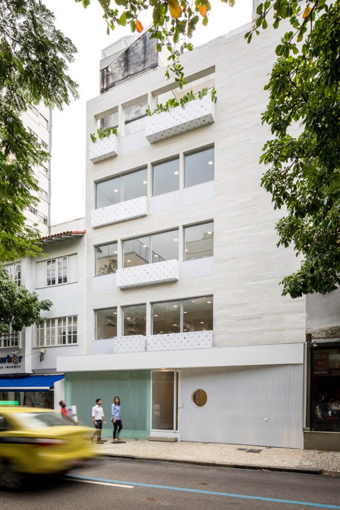 Located in one of the main streets of Leblon, this project is characterized by a color palette applied in different textures, bringing together a light and cozy atmosphere to the corporate building. The floor in slate tiles was applied on the ground floor, while on the other storeys the same slate appears in regular tiles, in the working rooms, hallways and services.