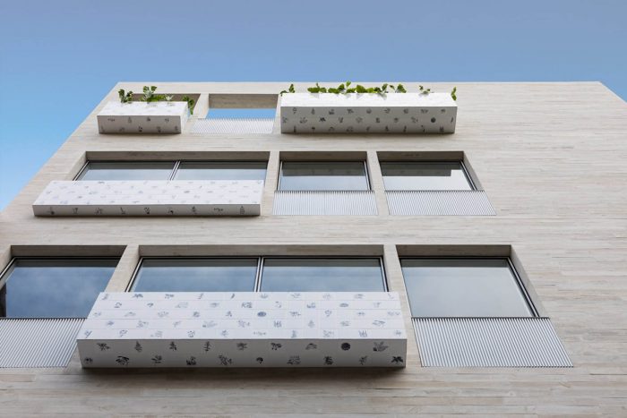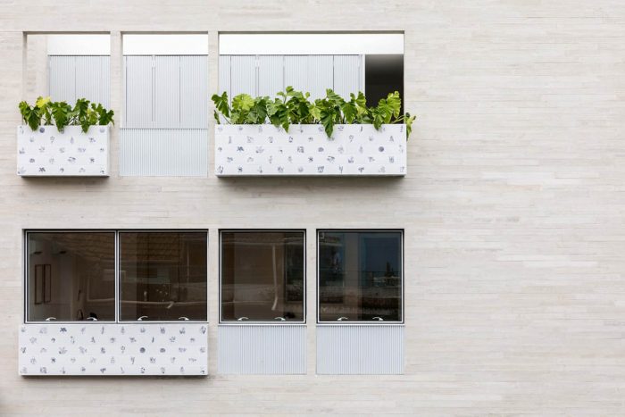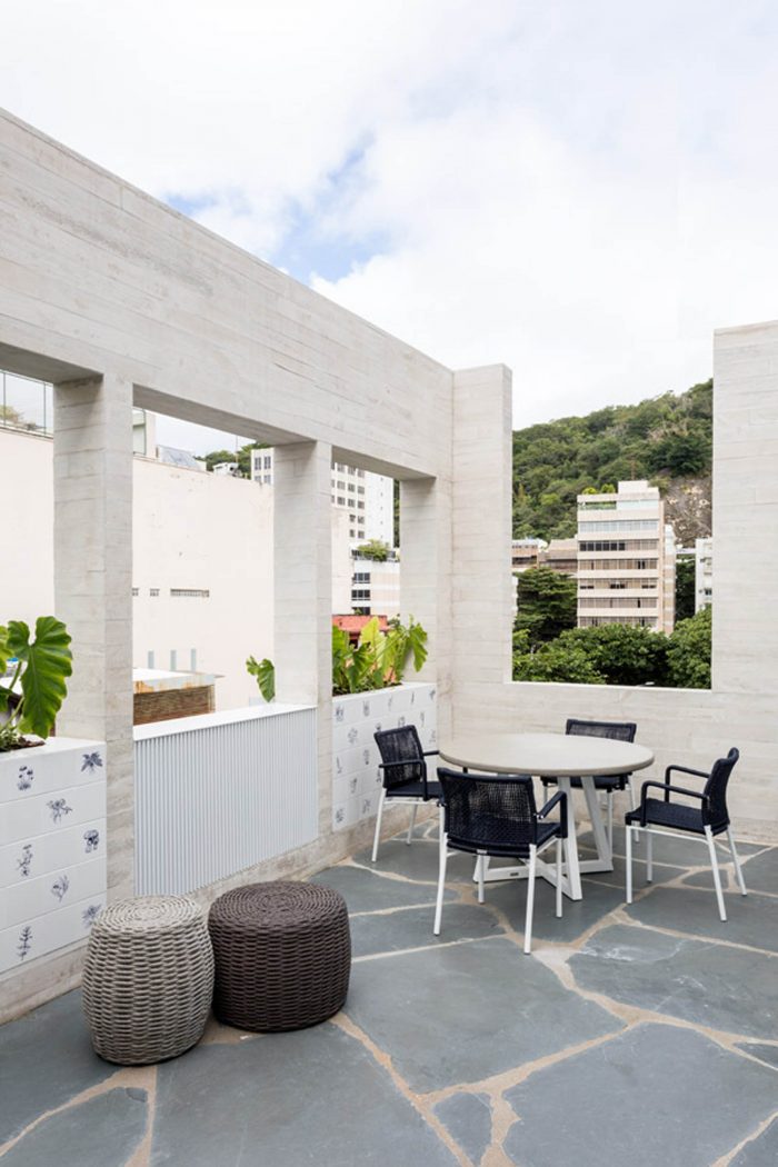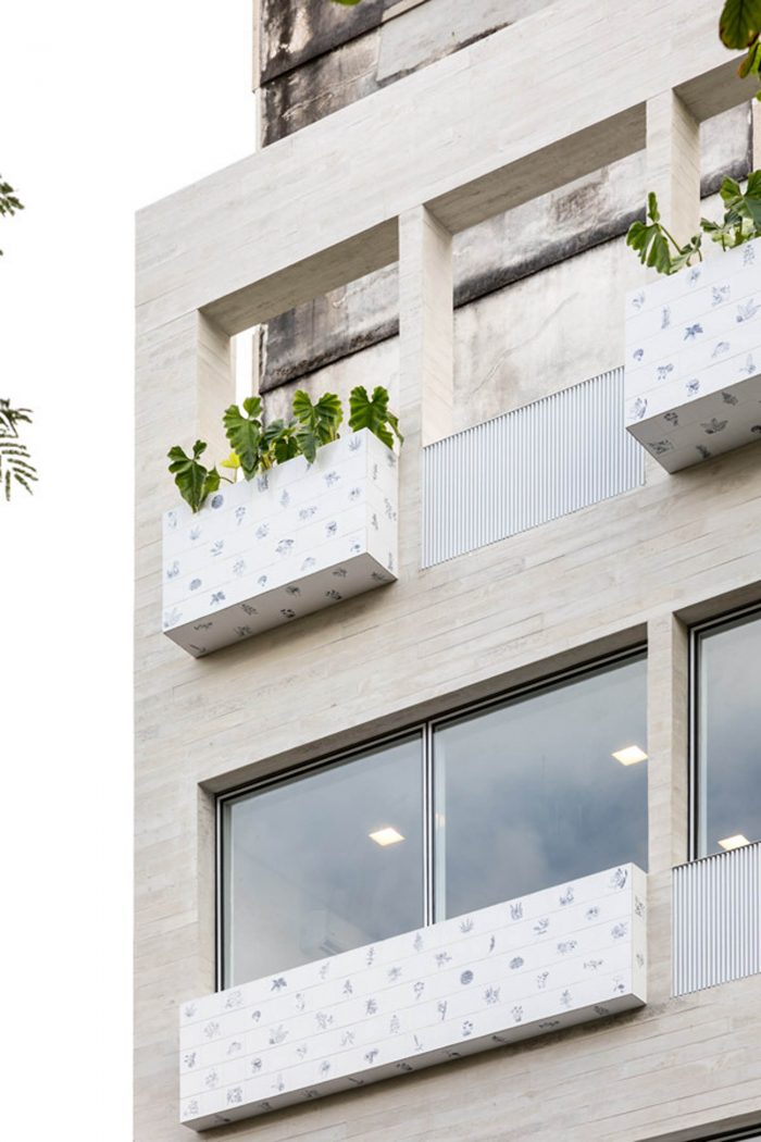 These are the strong features of this project, the projecting volumes, besides giving movement e breaking the rhythm of the facade; carry the masterpiece of the Brazilian artist Adriana Varejão, named “panacea fantástica”. Reinforcing the “carioca” character of the project, harking back to modernist buildings with their typical panels, this project offers this masterpiece to the city.