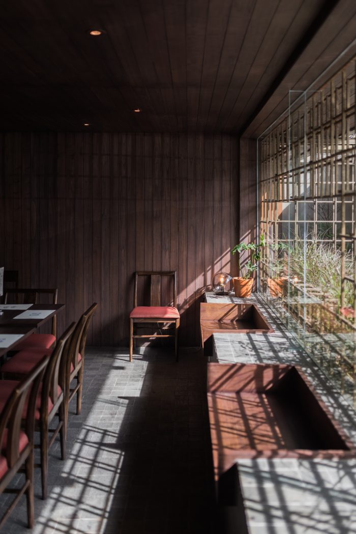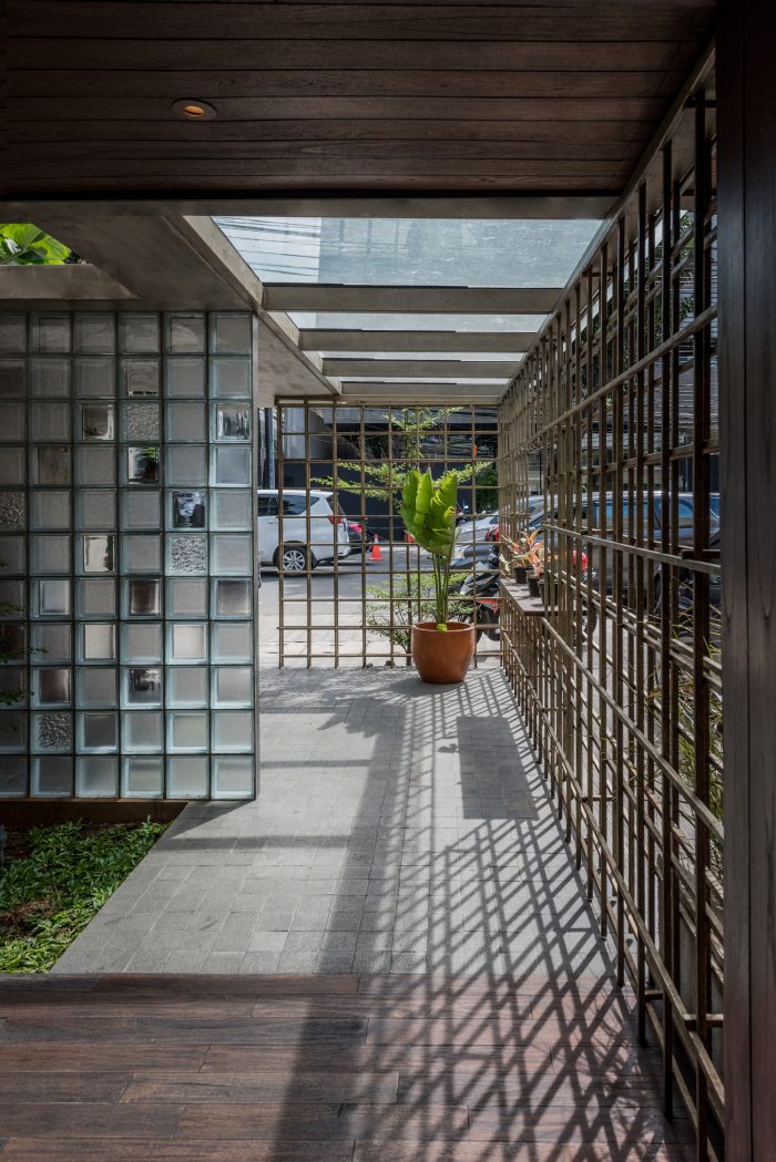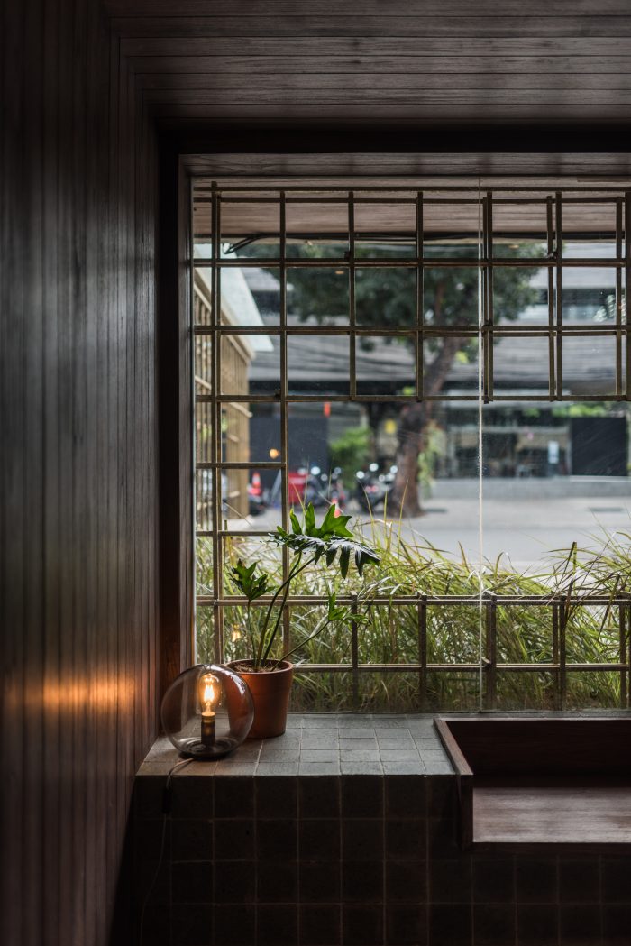 Observing customer behavior, upon entering the room, the customers would choose the best seat—the one with the best view. However, the existing spot were deemed undesirable as it faces parking area and basks in Jakarta sun heat. For that reason, the architects design buffers (brass tapestry structure and planter box) hence resulted in attractive view and unique shadow play. Seeing from business point of view, the design increases capacity efficiency.