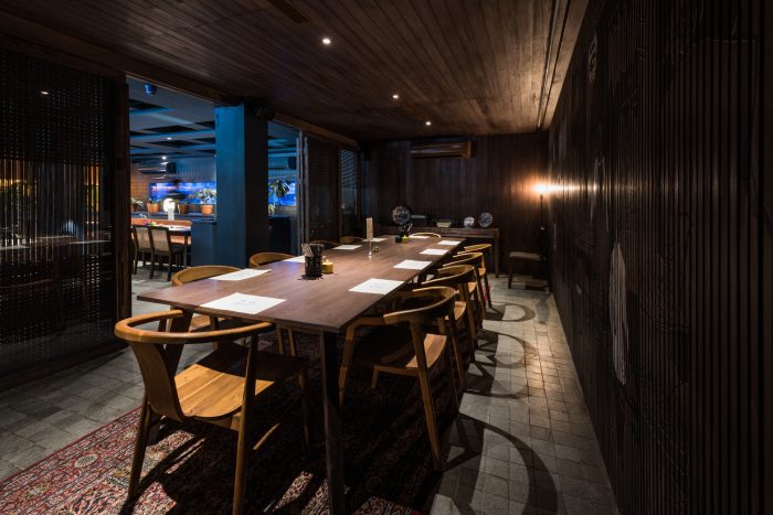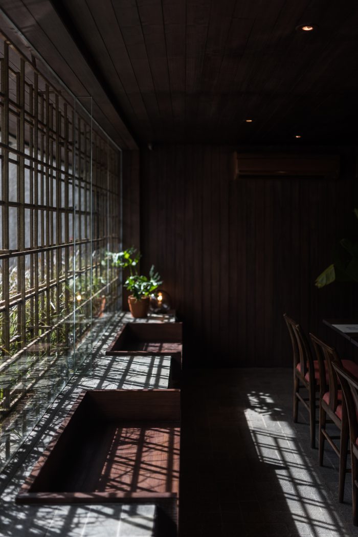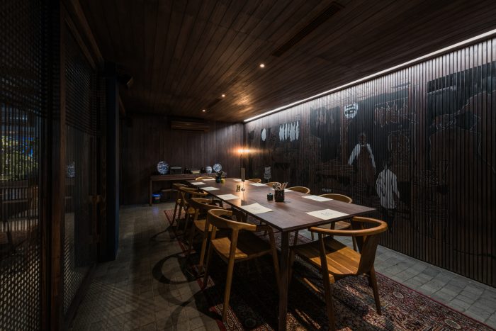 When it comes to the word Asian, generally, the masses think of ornaments, such as red lanterns. Instead of going with it, Arti Design Studio dig deeper to the roots, researching down to the specific materials. The combination of dark wood and stone makes the entire restaurant feels homy, not only looks Asian. This leaves a deeper impression.