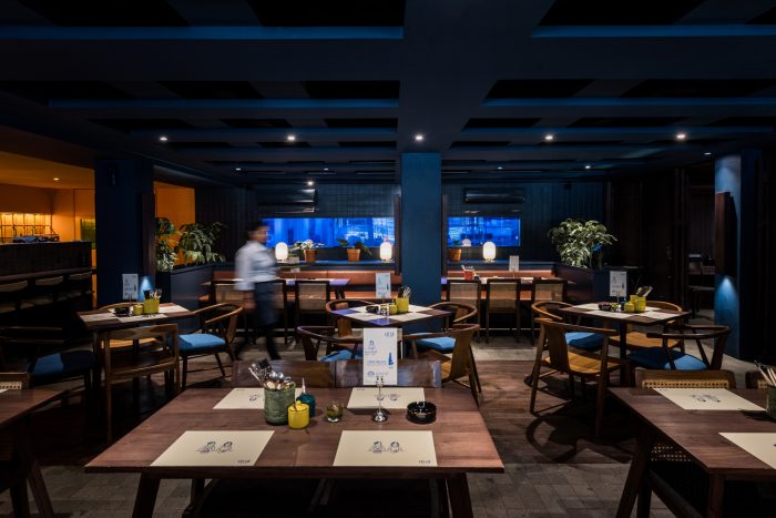 The VIP room was secluded yet lively. Its rattan door allows the VIP costumers to see the silhouette movements from the other side of the restaurant, giving the customers a sense of privacy and belonging at the same time. Arti Design Studio makes sure its design gives the best experience. Aside from giving touches of nature, planter boxes that surround the tables also acts as view buffers to the waiters passing by. The plants also hide service station behind the blue box. This way, the customers’ experience won’t be disturbed by the service scenes.