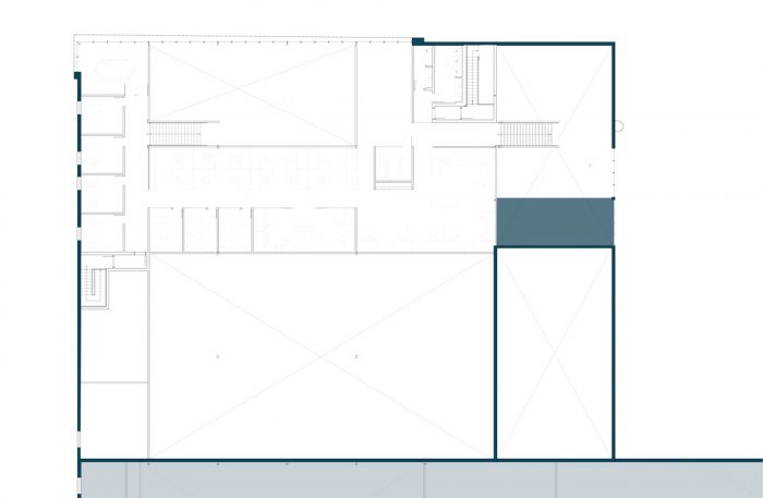 The use of a metallic cladding of the same color as the one already existing harmonize the new volume with the rest of the building. However, its smoother profile emphasizes, with the subtle play of textures, the marriage between the old and the new.