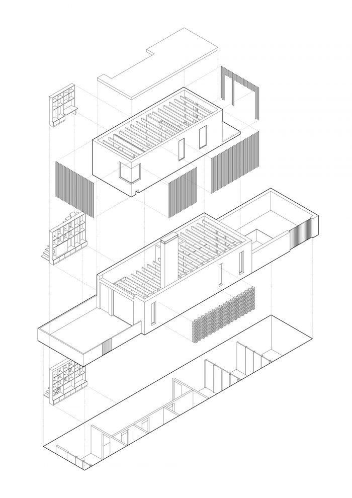 预算限制意味着没有主承包商,每个包都是单独管理。与作为项目经理的客户的紧密合作是非常重要的,这个过程需要建筑团队的奉献,他们热情地接受了整体设计。该项目由其元素性质决定,由街道层面的砖砌基座和上面精细的木制框架结构组成。地下室围绕两个庭院形成,使日光能够深入到规划中。简单的形式由一个雕塑般的砖制烟囱完成,它点缀了整个构图,并形成了开放式底层的一个焦点。