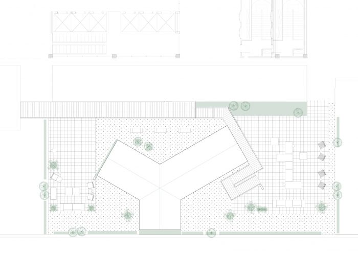这是一项干净、无浪费、有组织和高效的工作。占地100平方米的外部结构(门廊和木质围墙)只用了10天就组装完毕。传统的混凝土建筑每使用一吨混凝土就会向大气排放一吨二氧化碳,而木结构建筑则以同样的比例封存二氧化碳。