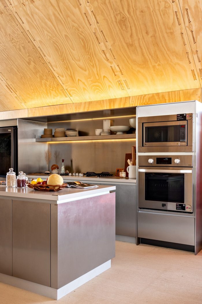 The interior comprises a living room, dining room, kitchen, bedroom, two balconies and LG showroom. All materials and finishes were designed to generate minimal non-recyclable waste. The Stainless Steel Kitchen was designed especially for the LG ThinQ House, which allows for a smooth surface that meets legal hygiene requirements, using stainless steel that stands out for its high performance, durability and for being fully recyclable.