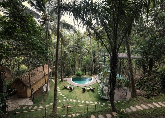 Lift is a small experimental treetop boutique hotel located in a suburb of Ubud and Bali. Our architecture studio is in close proximity to it, and the beginnings of the project were a testing ground for ideas on how to lift structures off the ground, to have a less invasive footprint and impact, more cost effective and faster to build.