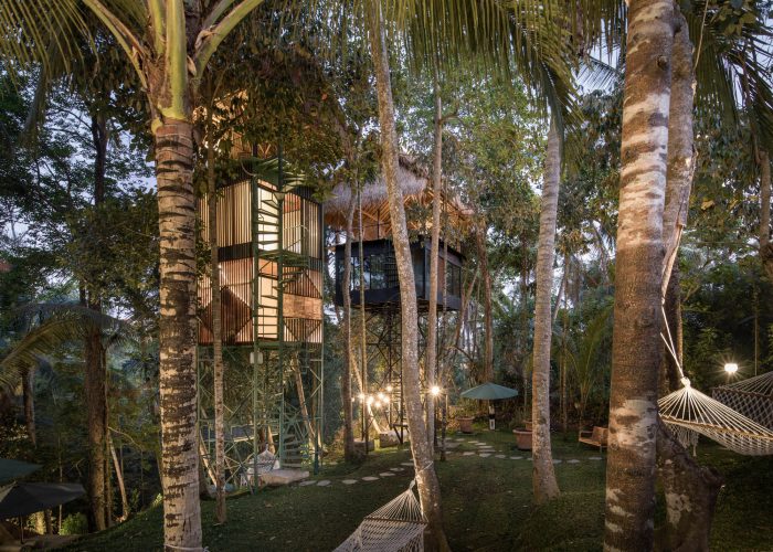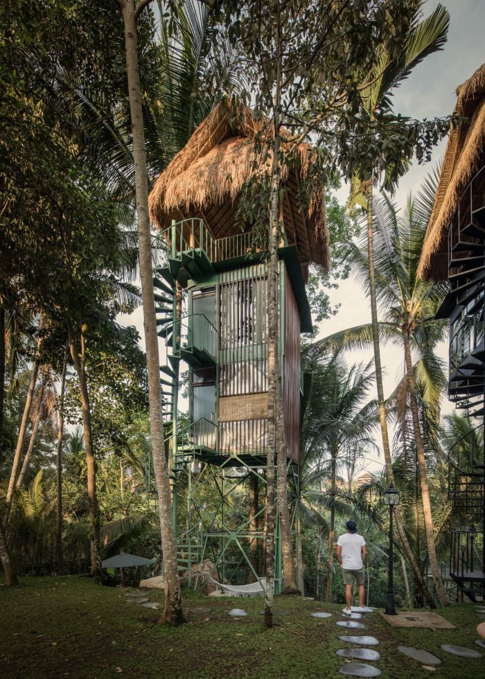 Lift是一个小型的实验性树顶精品酒店,位于乌布和巴厘岛的一个郊区。我们的建筑工作室离它很近,项目的开始是一个试验场,测试如何将结构抬离地面的想法,以便有更少的入侵足迹和影响,更具成本效益和更快的建设。