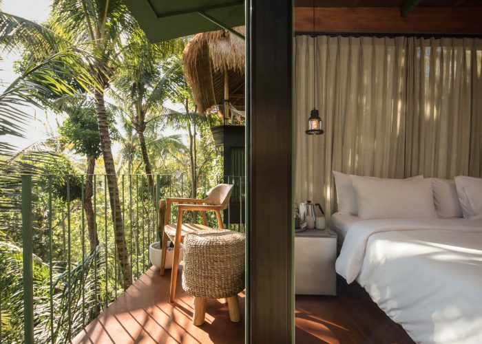 Somewhere stuck in the past and the future, it seeks to bridge different aspects of Bali into a memorable experience, and creates a backdrop for pictures to take or keep in mind. The park like setting holds a small sauna, a little pool, bar, benches and small recreational areas. This plus the yoga deck way above ground provides enough reason to stay there for a couple of days. We are planning on extending the hotel further down to the river.