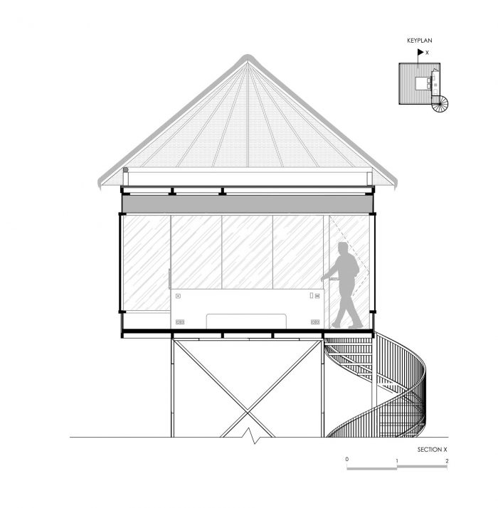 Many developments here on this island use high quantities of concrete, and the experience is often times the same. We wanted to challenge that and create light architecture while suggesting a surreal mix of industrial impermanent structures embedded into a tropical forest. Each of the structures has a different organization, material and appearance.