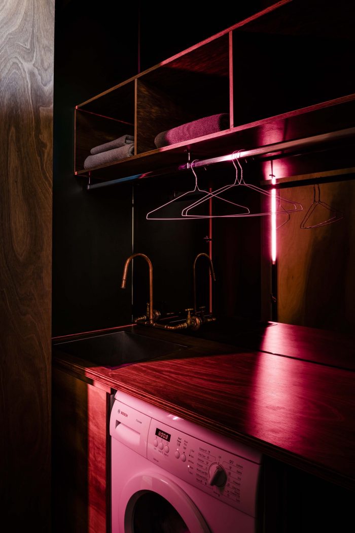 光廊屋是一个扩建项目,它庆祝了从旧到新的旅程。抵达后,该物业呈现出一个熟悉的维多利亚时代的工人小屋的样子。遗产的外墙已经恢复了它以前的光彩,并仔细考虑了保留和庆祝该物业原有部分的时代特征。当游客沿着典型的维多利亚时代的枪管走廊前进时,他们来到了一个双层高的斑纹胶质隧道,这是从旧到新旅程的开始。这条隧道掩盖了洗衣房和主浴室,创造了一个无缝过渡。