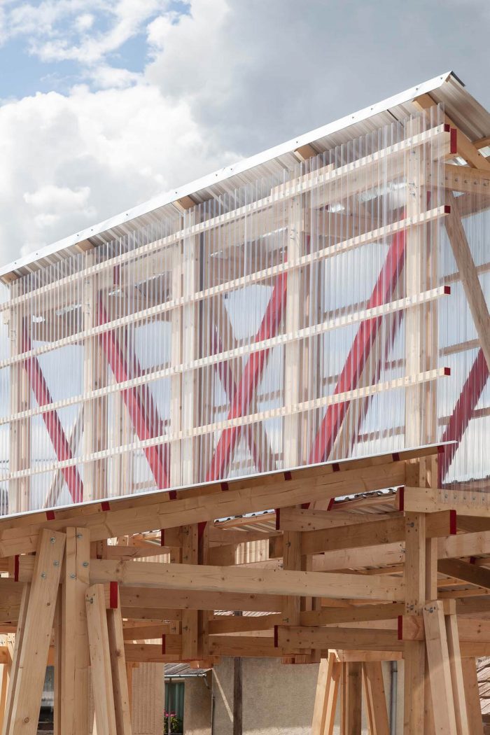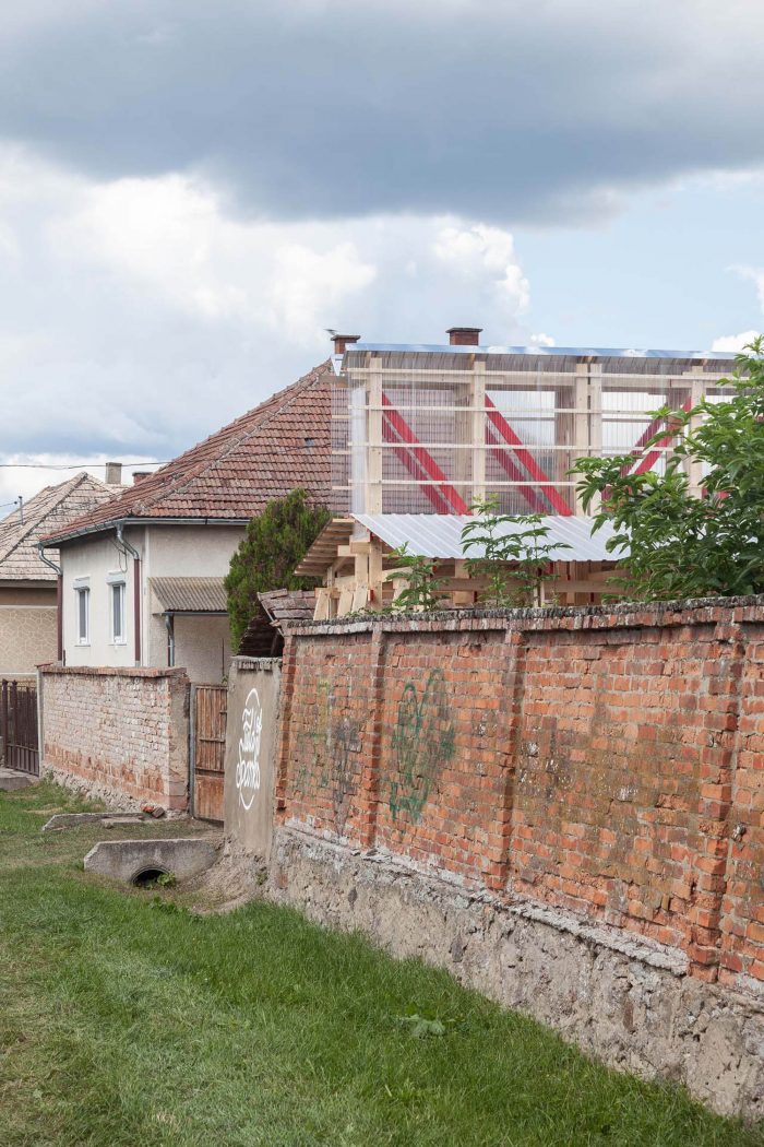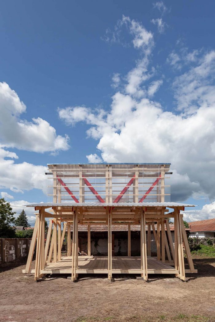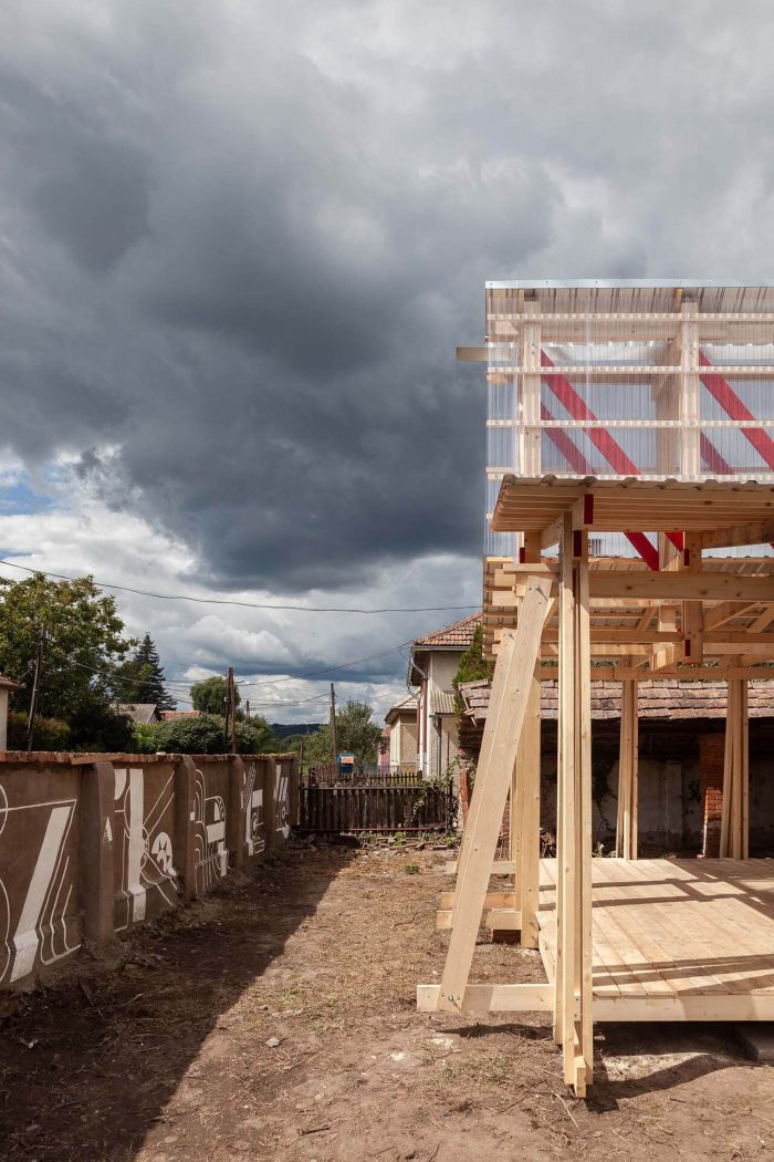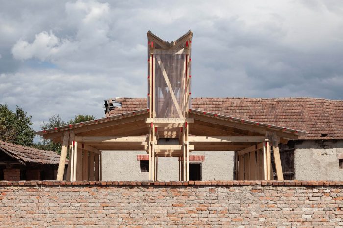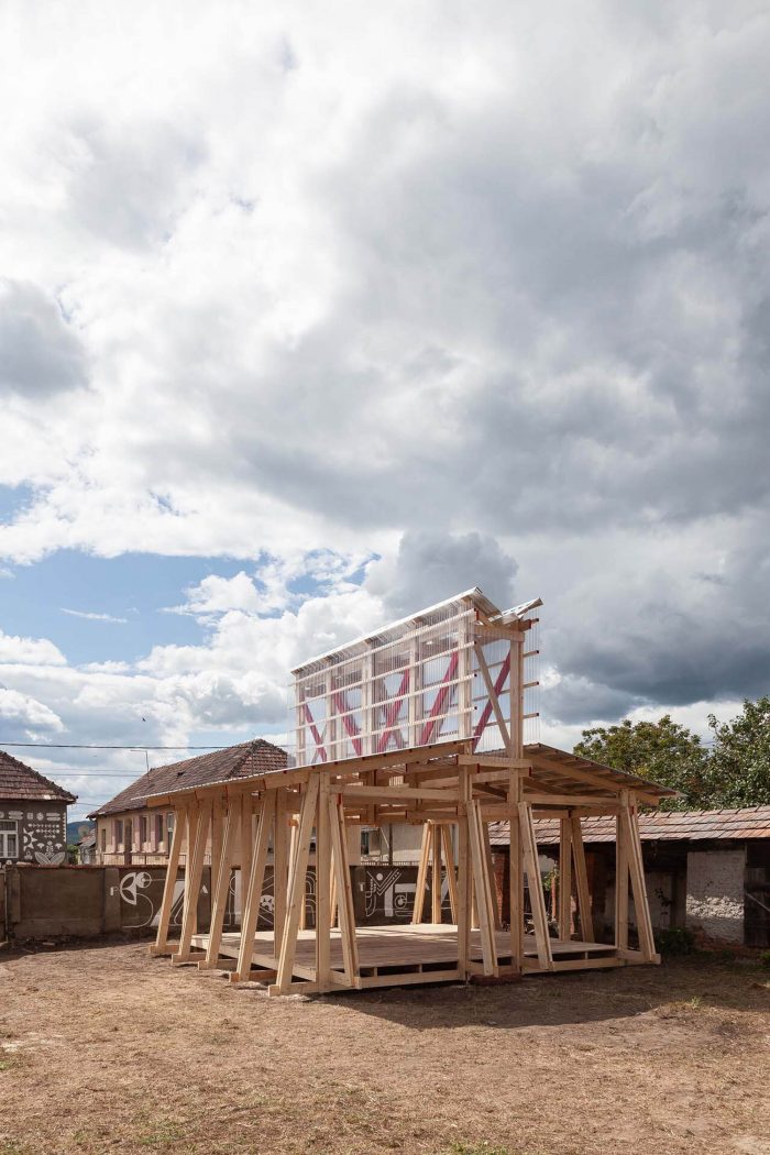 This year, however, the founders of the festival came up with the idea of transforming an abandoned farmstead in the middle of the village into an artistic residence, where a pavilion for workshops or smaller events was to be built. The intention was to create a functional space, but with added aesthetic value.