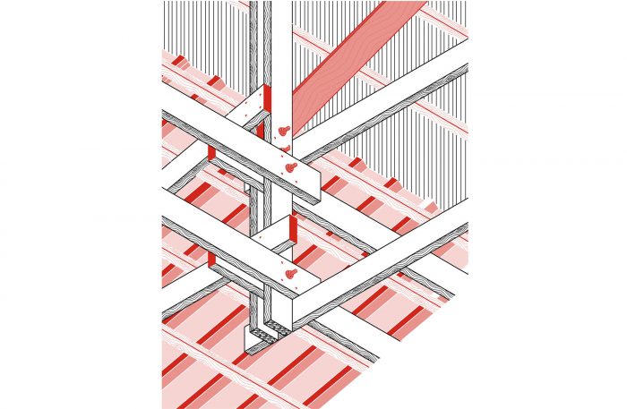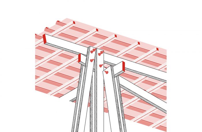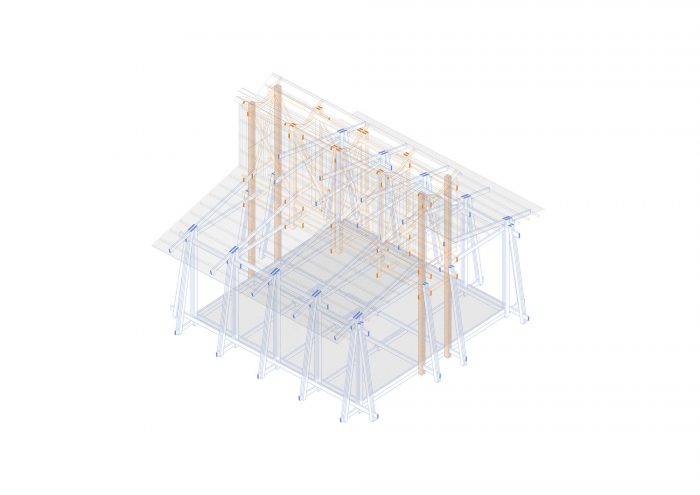 这种拟议的形式不应该是不显眼的,相反,应该是有吸引力的和高度视觉的。美学被转移到结构中,并将光烟囱横梁的平庸静态方案变成图形和视觉模式。我们正在创造一个功能性装饰品的概念,其中光烟囱作为一个视觉吸引者,也作为一个格子梁。由于这一点,它的中心不需要柱子,因为由五个横向框架组成的框架结构被这个格子大梁垂直地加强了。