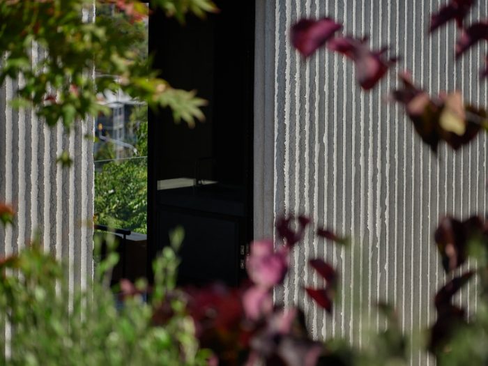 Anchoring the home to its site sees the use of fluted concrete formwork to create a sense of permanence. As a new insertion to an existing milieu, the structure sits pushed up toward the boundary, creating a courtyard garden in the center of the site. The environment is folded into the home and therefore celebrated in different ways through the spaces created. The intuitive floor plan is formed from a place of restraint and efficiency. Although spread over two levels, the burrowing of the lower level into the sloping site allows a reduced presence from the approach. It provides a considered engagement with the site, whereby the bedrooms are restful, set within the native vegetation below, and feel completely removed from its urban environment. Framing the upper level, the fluted concrete walls sit to the north and east, pulling the overall form together and recalibrating an inward-directed focus.