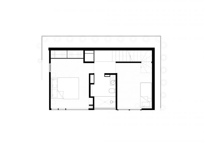 老一辈的人往往对集约化建设犹豫不决,他们认为在这个过程中,他们周围的环境会退化,或失去社区的特征。轻装上阵 "挑战了这种心态,并提供了一个洞察力,让我们了解如何提高我们的周围环境和改善我们的生活质量。Lightly Weighted考虑了所有这些可能性,并展示了材料、光线和规模如何能够变得高度反应,并与周围环境相联系。该建筑占地42平方米(两层共85平方米),使用了诸如OSB等成本效益高的材料,并在我们日常接触的空间中结合了这些高质量的选择。当地采购的木材在墙壁上排列,同时也起到了掩盖厨房橱柜、衣柜、衣柜和洗衣房的功能。